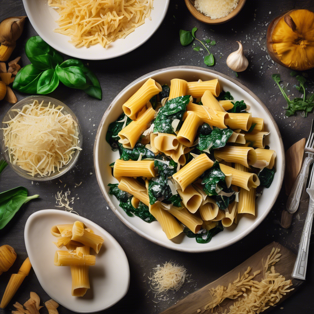 Mushroom and Spinach Rigatoni with Extra Parmesan Cheese