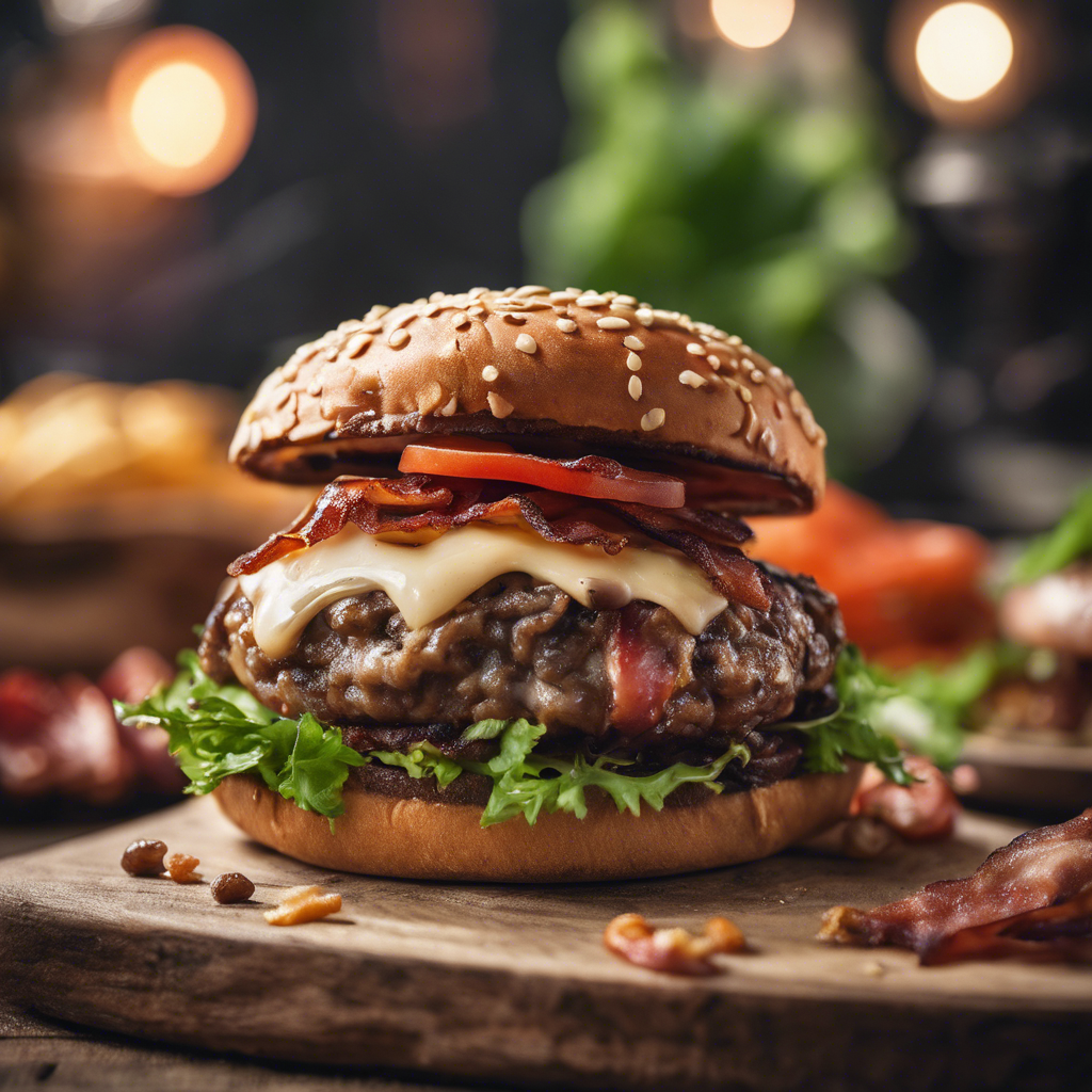 - Assemble the burgers by spreading the Dijon-mayo mixture on the bottom half of each hamburger bun. Place a beef patty with melted Swiss cheese on top of the spread, followed by 2 slices of crispy bacon, a generous portion of sautéed mushrooms, shredded lettuce, and a slice of tomato. Top with the other half of the hamburger bun.