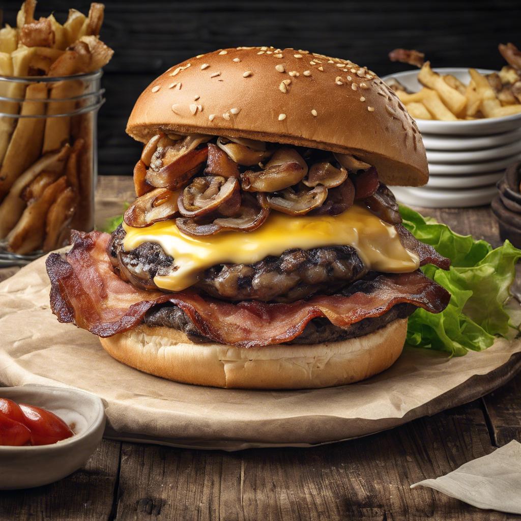 The Mushroom Swiss Burger with bacon has a rich history dating back to the 1960s. This iconic burger gained popularity in the United States, particularly in the Midwest, where it became a staple in diners and family-owned restaurants. The juicy beef patty is topped with sautéed mushrooms, melted Swiss cheese, and crispy bacon, creating a symphony of flavors and textures. Chefs across the country have put their own spin on this classic, with some adding special sauces or using unique blends of mushrooms. Today, the best versions of this dish can be found in traditional American diners and burger joints, where the quality of the beef, cheese, and bacon are crucial to achieving the perfect balance of flavors.