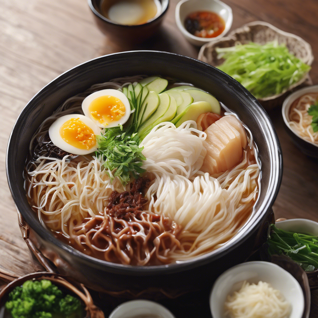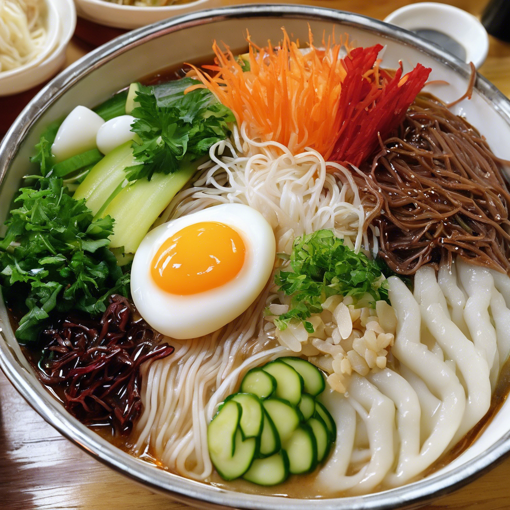 Naengmyeon, a Korean cold noodle dish, has a rich history dating back to the Joseon Dynasty. Originally enjoyed by the upper class, it gained popularity among the masses in the 19th century. The dish features long, thin noodles made from buckwheat or sweet potato starch, served in a chilled beef broth or tangy, spicy sauce. The noodles are often topped with thinly sliced cucumber, pear, and a boiled egg. In South Korea, the city of Pyongyang is renowned for its version of naengmyeon, known as Pyongyang naengmyeon. Today, the best versions of this dish can be found in specialty restaurants in Seoul and other major cities. Chefs take pride in creating the perfect balance of flavors and textures, ensuring the noodles are chewy and the broth is refreshing. For an authentic experience, it's essential to get the broth and the noodles just right. Some alternative methods for making naengmyeon include using a slushy, icy broth or incorporating different proteins like sliced beef or even raw fish. Whether you're in Korea or elsewhere, naengmyeon is a must-try dish for those seeking a refreshing and satisfying culinary experience.