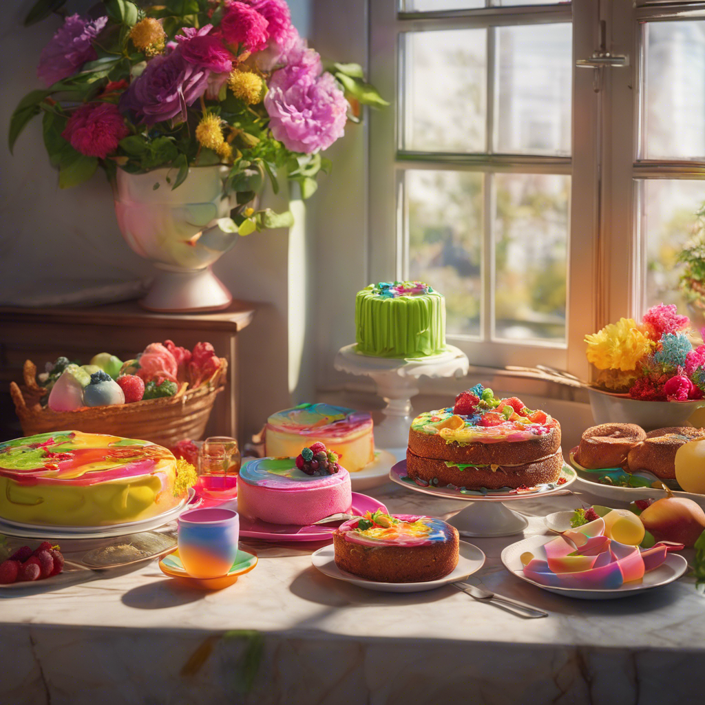 The Neon Rainbow Cake is a vibrant and visually stunning dessert that has become a popular choice for celebrations and special occasions. This colorful confection features layers of brightly hued cake, typically in shades of neon pink, blue, green, and yellow, topped with a luscious frosting and an array of colorful sprinkles. The origins of this whimsical cake are somewhat elusive, but it has gained widespread popularity in recent years, particularly in the realm of social media and food blogging. Chefs and home bakers alike have embraced the challenge of creating the perfect Neon Rainbow Cake, with some adding their own unique twists and flavor combinations to the classic recipe. While there isn't a specific region or restaurant associated with this cake, it has become a staple in bakeries and dessert shops around the world. For those seeking the best version of this delightful treat, it's essential to ensure that the cake layers are moist and flavorful, the frosting is smooth and creamy, and the colors are vibrant and eye-catching. Some alternative methods for making this cake include using natural food dyes for a healthier twist, or incorporating different flavor profiles such as citrus or berry to complement the colorful aesthetic. Whether you're celebrating a birthday, a holiday, or simply indulging in a sweet treat, the Neon Rainbow Cake is sure to bring a burst of joy and color to any occasion.