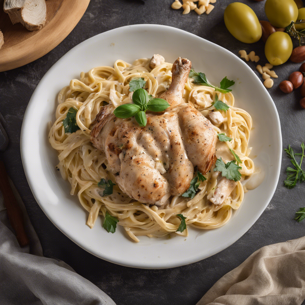 A delicious and creamy pasta dish with tender chicken, fresh asparagus, and a flavorful garlic parmesan sauce.