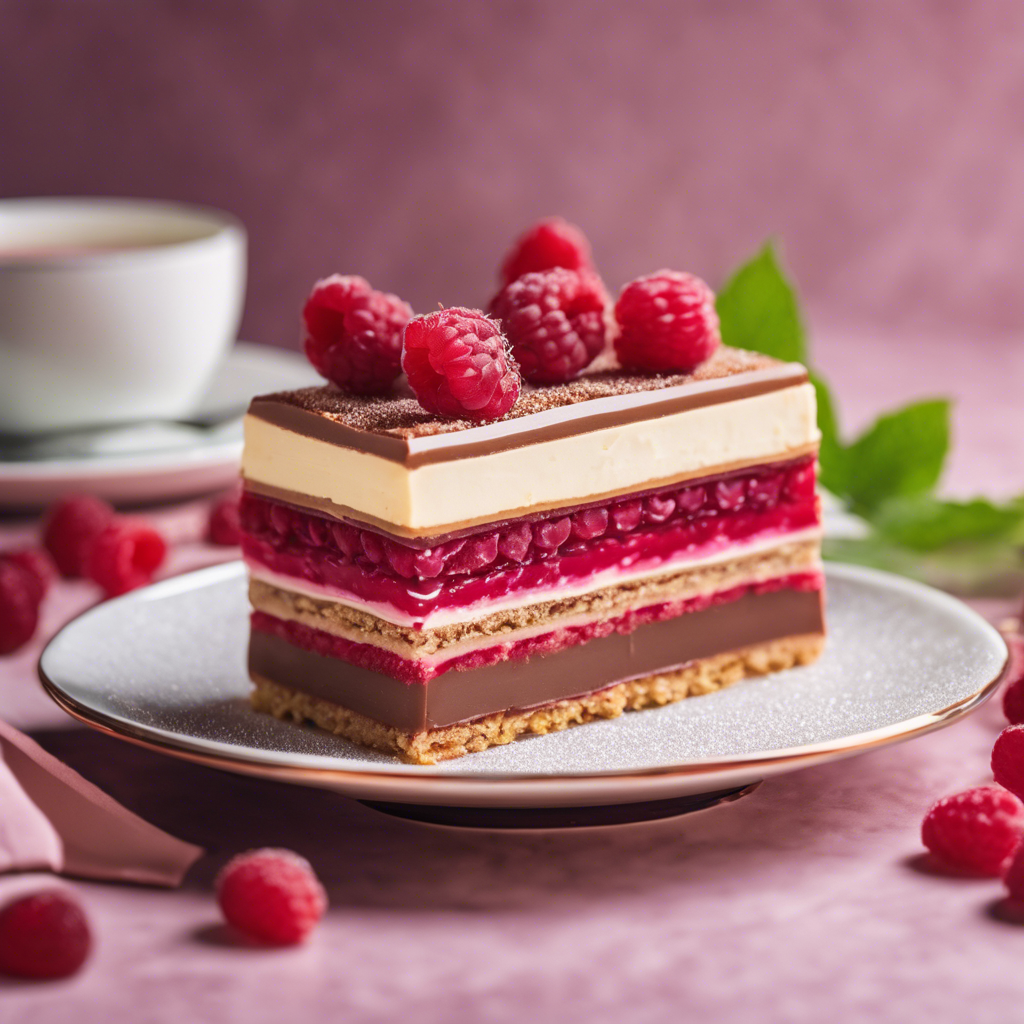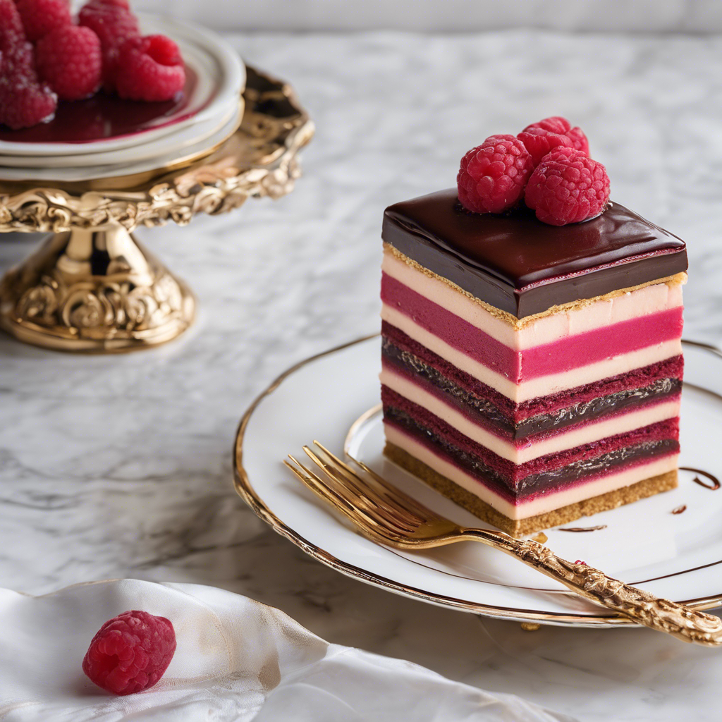 The history of Opera Cake with a raspberry filling can be traced back to the 1950s in France. This decadent dessert is said to have been created by the world-renowned French pastry chef Cyriaque Gavillon. The cake is made up of delicate layers of almond sponge cake soaked in coffee syrup, alternating with layers of smooth raspberry filling and rich chocolate ganache. The whole cake is then covered in a shiny chocolate glaze, creating a stunning and delicious dessert. Today, this delightful twist on the classic Opera Cake can be found in upscale patisseries and fine dining restaurants, especially in Paris and other major cities known for their culinary expertise. For those looking to try the best version of this dessert, seeking out a renowned pastry chef or a Michelin-starred restaurant is highly recommended. The key to getting this dish right lies in the balance of flavors and textures, with the raspberry filling adding a delightful tartness to complement the sweetness of the chocolate and coffee. As for alternative methods, some chefs may incorporate fresh raspberries or raspberry jam into the filling for a more intense fruit flavor.