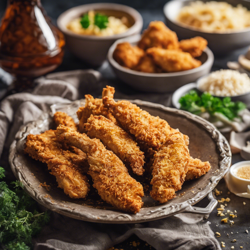 Oven-Fried Chicken Tenders with Extra Crispy Garlic Parmesan Crust is a modern twist on a classic comfort food favorite. This dish combines the juicy tenderness of chicken tenders with a crunchy, flavorful crust made from garlic, Parmesan, and breadcrumbs. The recipe is a popular choice for those looking for a healthier alternative to traditional fried chicken, as it is baked in the oven instead of being deep-fried. This dish has gained popularity in recent years as people seek out delicious, yet healthier, options for their meals. The origins of this dish can be traced back to the southern United States, where fried chicken has long been a beloved staple. Chefs and home cooks alike have put their own spin on the classic recipe, experimenting with different seasonings and coatings to create a unique and flavorful dish. The addition of garlic and Parmesan to the crust adds a savory, umami flavor that sets this dish apart from traditional fried chicken. Today, the best versions of this dish can be found in restaurants and kitchens that prioritize high-quality, fresh ingredients and careful preparation. Achieving the perfect balance of juiciness and crispiness is key to making outstanding Oven-Fried Chicken Tenders with Extra Crispy Garlic Parmesan Crust. The use of high-quality chicken, a well-seasoned crust, and proper baking techniques are essential for success. For those looking to put a unique spin on this dish, alternative methods such as using different herbs and spices in the crust or incorporating alternative coatings like panko breadcrumbs can offer exciting variations. Whether enjoyed as a family meal or served at a restaurant, Oven-Fried Chicken Tenders with Extra Crispy Garlic Parmesan Crust is a delicious and satisfying dish that continues to delight food lovers around the world.
