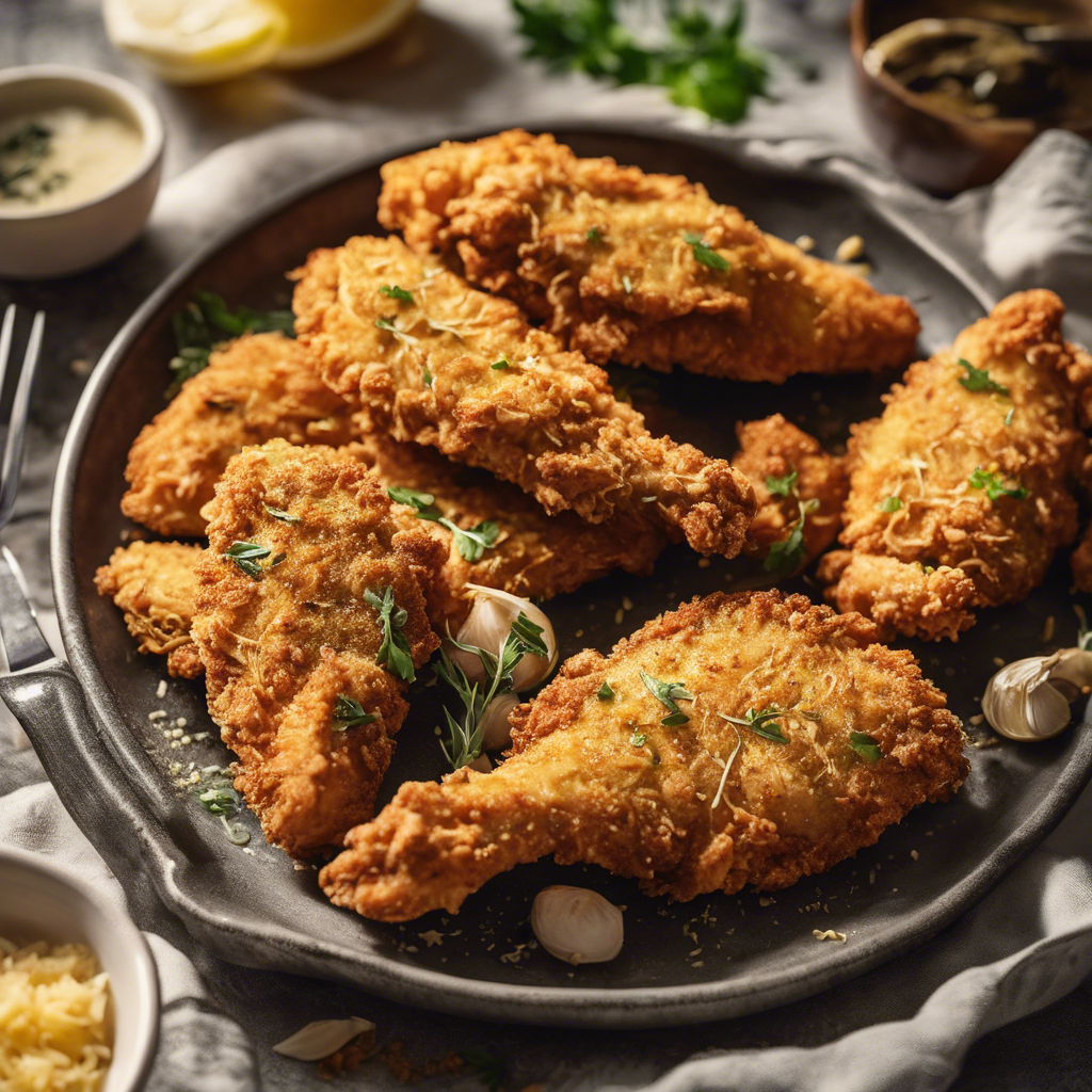 Oven-Fried Chicken Tenders with Garlic Parmesan Crust is a modern twist on a classic comfort food favorite. This dish originated in the southern United States, where chefs sought to create a healthier alternative to traditional fried chicken. The recipe gained popularity for its crispy texture and savory flavor, making it a hit in households and restaurants alike. The key to perfecting this dish lies in the balance of herbs and spices in the garlic parmesan crust, as well as the cooking technique to achieve that crispy, golden-brown exterior. Today, the best versions of this dish can be found in family-owned diners and modern eateries that prioritize fresh, high-quality ingredients. For a unique twist, some chefs incorporate different cheese blends or add a hint of heat with a sprinkle of cayenne pepper. Whether served as an appetizer, main course, or snack, Oven-Fried Chicken Tenders with Garlic Parmesan Crust continues to be a beloved dish that brings people together over a shared love for delicious, comforting food.