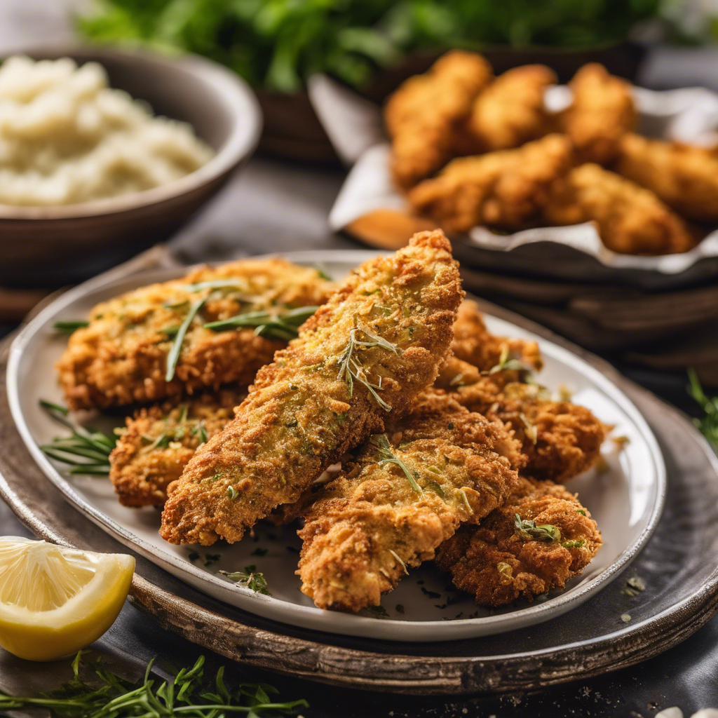 Oven-Fried Chicken Tenders with Herb-Infused Garlic Parmesan Crust is a modern twist on a classic comfort food. This dish has its roots in Southern American cuisine, where chefs sought to create a healthier alternative to traditional fried chicken. The recipe gained popularity for its crispy texture and flavorful crust, thanks to the combination of herbs, garlic, and Parmesan cheese. Today, this dish can be found in restaurants across the United States, with variations in seasoning and cooking methods. For the best version, look for a restaurant that uses fresh herbs and high-quality Parmesan cheese to elevate the flavors. The key to perfecting this dish lies in achieving a golden, crunchy crust while keeping the chicken tender and juicy. Whether served as an appetizer or a main course, Oven-Fried Chicken Tenders with Herb-Infused Garlic Parmesan Crust is a crowd-pleaser that satisfies the craving for a delicious, guilt-free indulgence.