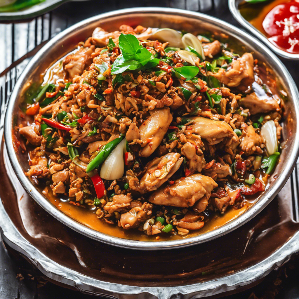 Pad Krapow Chicken, also known as Thai Basil Chicken, is a popular and aromatic Thai dish. It originated in the streets of Thailand and has become a staple in Thai cuisine. The dish features stir-fried chicken with Thai basil, garlic, chilies, and a savory sauce. The combination of flavors creates a spicy, savory, and slightly sweet taste that is beloved by many. This dish is often served with steamed rice and a crispy fried egg on top. Chefs in Thailand and around the world have put their own spin on this classic dish, making it a favorite in Thai restaurants globally. For the best version of this dish, head to the bustling streets of Bangkok or visit a renowned Thai restaurant known for its authentic flavors. The key to getting this dish right lies in the freshness of the ingredients, especially the Thai basil, which imparts a unique flavor to the dish. While the traditional recipe calls for chicken, some variations use other proteins like pork or seafood, offering a delightful alternative for those looking to explore different flavors. Whether you're a fan of spicy food or simply enjoy the bold flavors of Thai cuisine, Pad Krapow Chicken is a must-try dish that will tantalize your taste buds.