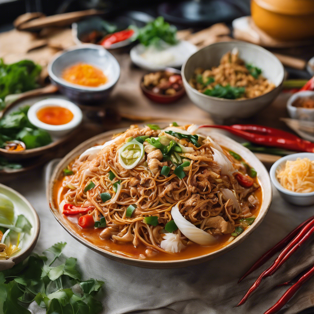 Pad Woon Sen, a classic Thai stir-fried glass noodle dish, has a rich history dating back to the ancient Siamese kingdom. The dish was traditionally prepared by skilled chefs in the royal palaces of Thailand, using a blend of fresh ingredients and aromatic spices. Over time, Pad Woon Sen has evolved to incorporate spicy chili sauce, adding a fiery kick to the savory flavors. Today, this delectable dish can be found in bustling street markets and renowned restaurants across Thailand, with each region adding its own unique twist. For the best Pad Woon Sen with spicy chili sauce, head to Bangkok's vibrant Chinatown or visit a local eatery in Chiang Mai. The key to perfecting this dish lies in the balance of sweet, sour, and spicy flavors, achieved through the precise combination of chili sauce, soy sauce, and tamarind paste. Whether you're a fan of traditional recipes or innovative variations, Pad Woon Sen with spicy chili sauce is a must-try for any food enthusiast.