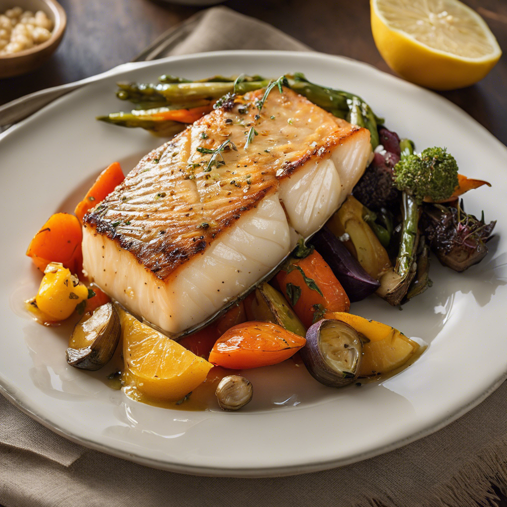 Pan-Seared Halibut with Citrus Glaze and Roasted Vegetables