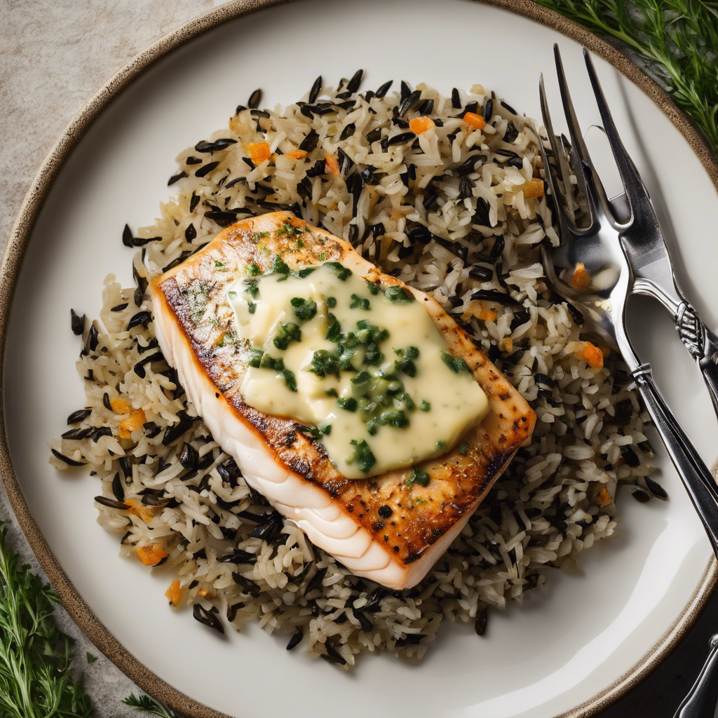 The Pan-Seared Halibut with Herb Butter is a classic dish that has been enjoyed for centuries. The dish originated in the coastal regions of North America, where halibut is abundant and a staple in the local cuisine. Renowned chefs like Thomas Keller and Gordon Ramsay have put their own spin on this dish, elevating it to new heights of culinary excellence. The key to a perfect Pan-Seared Halibut lies in the quality of the fish and the skillful execution of the searing process. The halibut should be fresh, with firm, white flesh and a delicate flavor. The herb butter, made with a blend of fresh herbs like parsley, dill, and chives, adds a burst of aromatic richness to the dish. The wild rice pilaf, with its nutty flavor and chewy texture, complements the halibut perfectly. It's often cooked with a mix of vegetables and herbs, adding depth and complexity to the side dish. Today, some of the best versions of this dish can be found in upscale seafood restaurants along the Pacific Northwest coast, where halibut is caught fresh and served with locally sourced ingredients. However, with the right recipe and technique, home cooks can also create a restaurant-quality Pan-Seared Halibut with Herb Butter and wild rice pilaf in their own kitchens. For those looking for a famous alternative method, grilling the halibut instead of pan-searing it can also yield delicious results, infusing the fish with a smoky flavor that pairs beautifully with the herb butter. Whether pan-seared or grilled, this dish is a celebration of the ocean's bounty and the artistry of culinary craftsmanship.