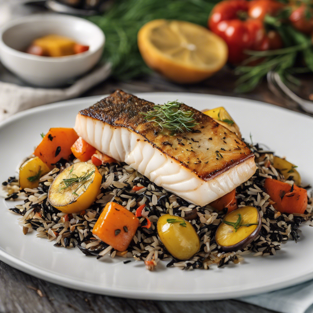 The history of Pan-Seared Halibut with Wild Rice and roasted vegetables dates back to the Pacific Northwest, where the pristine waters yield the freshest halibut. Renowned chefs in Seattle and Vancouver popularized this dish, showcasing the delicate flavor of halibut alongside the nutty texture of wild rice and the earthy sweetness of roasted vegetables. The dish has since become a staple in upscale seafood restaurants across North America. The key to this dish lies in the perfect sear on the halibut, the fluffy texture of the wild rice, and the caramelization of the roasted vegetables. For the best version of this dish, head to the Pacific Northwest for a truly authentic experience.