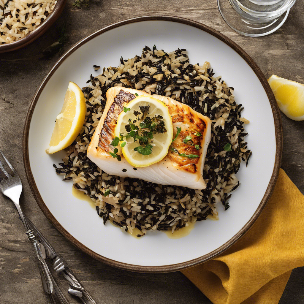 Pan-Seared Halibut with Wild Rice and Lemon-Butter Sauce