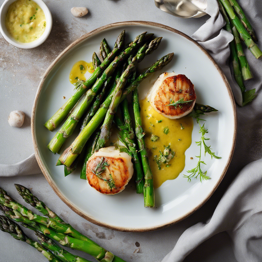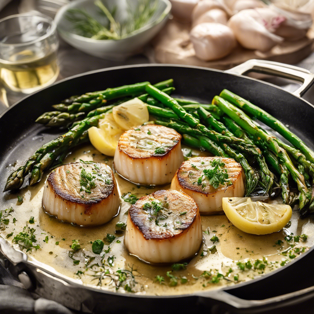 The history of Pan-Seared Scallops with Herb Butter and roasted asparagus can be traced back to the coastal regions of France, where fresh seafood and seasonal vegetables are abundant. This dish has been perfected by renowned chefs in Michelin-starred restaurants, who have elevated the simple combination of scallops and asparagus to a culinary masterpiece. The key to this dish lies in the quality of the ingredients - plump, fresh scallops seared to perfection and tender asparagus roasted with a hint of olive oil. The herb butter adds a rich and flavorful element, tying the dish together with a burst of aromatic herbs. Today, the best version of this dish can be found in upscale seafood restaurants that prioritize sourcing the finest, sustainable seafood and locally grown asparagus. It's important to get the searing of the scallops just right, ensuring a golden crust while maintaining a tender, buttery interior. An alternative method to consider is grilling the scallops for a smoky flavor, and serving them with a tangy lemon butter sauce.
