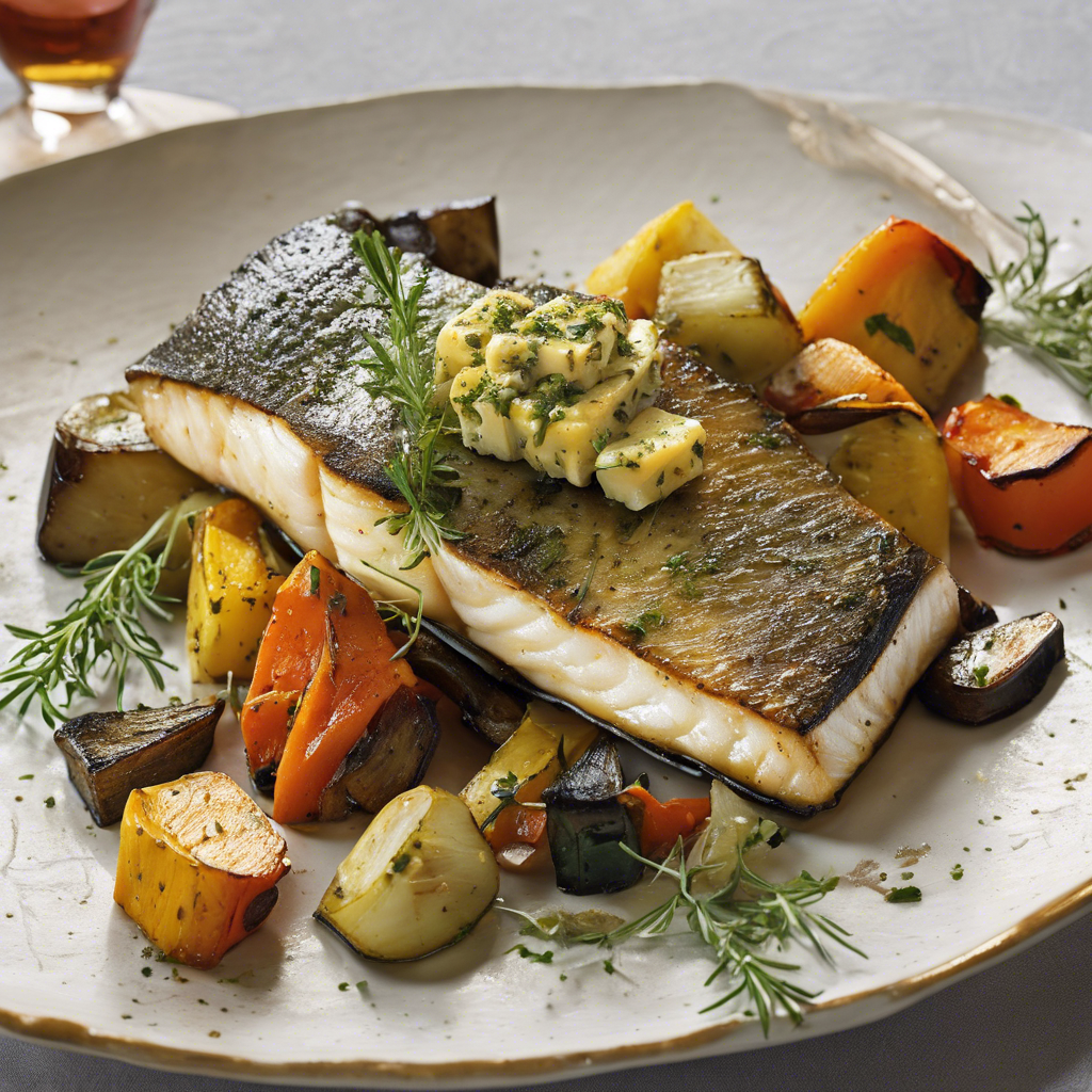 The history of Pan-Seared Sea Bass with Herb Butter dates back to the Mediterranean region, where the dish was perfected by skilled chefs who sought to highlight the delicate flavor of the sea bass. The sea bass is carefully seared to achieve a crispy exterior while maintaining its tender, flaky texture. The herb butter, infused with aromatic herbs like thyme, rosemary, and parsley, adds a rich and savory element to the dish. The roasted vegetables, such as asparagus, cherry tomatoes, and baby potatoes, complement the sea bass with their caramelized sweetness and earthy flavors. This dish has become a staple in upscale seafood restaurants, particularly along the coastlines of Italy, Greece, and Spain. For the best version of this dish, sourcing fresh, high-quality sea bass is crucial, as it is the star ingredient. Additionally, mastering the art of searing the fish to perfection and creating a flavorful herb butter are essential steps in achieving an exceptional Pan-Seared Sea Bass with Herb Butter. While the traditional method involves pan-searing, an alternative approach is to grill the sea bass for a smoky twist on the classic dish.