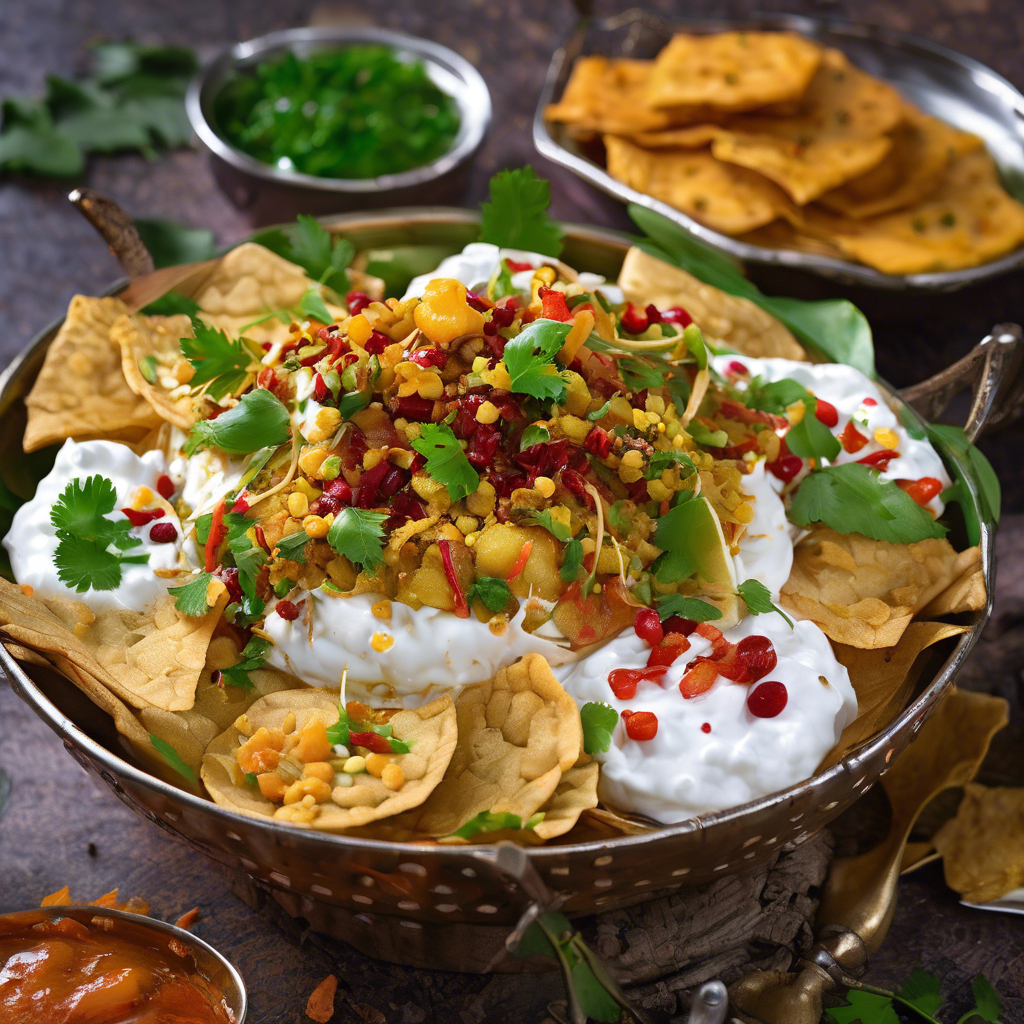 Papri Chaat is a popular Indian street food that originated in the Indian subcontinent. This savory snack is a delightful combination of crispy fried dough wafers (papri), boiled potatoes, chickpeas, tangy tamarind chutney, and a generous serving of yogurt. The dish is then garnished with a blend of aromatic spices, such as cumin, chaat masala, and chili powder, to create a burst of flavors. The addition of extra yogurt adds a creamy and refreshing element to the chaat, balancing the tanginess of the tamarind chutney. This dish is a favorite across India and is often enjoyed as a quick and flavorful snack. In Delhi, the capital city of India, the streets are lined with vendors expertly preparing and serving this beloved dish to locals and tourists alike. The best version of this dish can be found in the bustling streets of Old Delhi, where the chaat is made with precision and skill, ensuring a perfect balance of flavors and textures. The key to making an exceptional Papri Chaat lies in the quality of ingredients and the artful assembly of the dish. The crispy papri, creamy yogurt, and zesty chutneys must harmonize to create a truly memorable culinary experience. While the traditional recipe calls for yogurt, some variations of Papri Chaat may include additional toppings such as sev (crispy chickpea noodles) or fresh herbs, offering a unique twist on this classic street food. Whether enjoyed as a snack or appetizer, Papri Chaat with extra yogurt is a delightful indulgence that captures the essence of Indian street food culture.