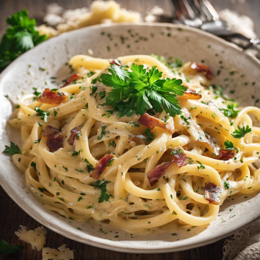Pasta alla Carbonara is a classic Italian dish with a rich history. Legend has it that it was created by Italian charcoal workers, or carbonai, who used the few ingredients they had on hand to make a hearty meal. The dish hails from Rome, where it's said to have been popularized after World War II. The key ingredients are simple but crucial: eggs, Pecorino Romano cheese, pancetta or guanciale, and black pepper. The addition of fresh parsley adds a burst of color and a hint of freshness to the creamy, savory dish. Today, the best versions of Pasta alla Carbonara can be found in authentic Roman trattorias, where skilled chefs expertly balance the creamy sauce with al dente pasta and crispy pancetta. It's important to get the sauce just right, ensuring it's creamy and not scrambled, and to use high-quality ingredients for the best flavor. While some variations of the dish may include cream or onions, purists argue that these additions detract from the dish's simplicity and purity of flavors. Whether you're in Rome or recreating the dish at home, the sprinkle of fresh parsley adds a delightful finishing touch to this timeless Italian favorite.