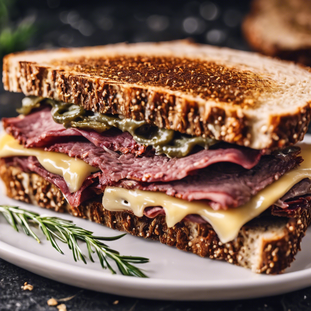 The history of Pastrami on Rye with melted Swiss cheese is a tale of culinary fusion and innovation. This iconic sandwich has its roots in the Jewish delis of New York City, where pastrami, a highly seasoned and smoked beef, was popularized by Eastern European Jewish immigrants. The addition of Swiss cheese, with its nutty and slightly sweet flavor, adds a creamy and indulgent element to the already savory and peppery pastrami. One of the most famous purveyors of this delectable sandwich is Katz's Delicatessen, a New York institution that has been serving up pastrami on rye with melted Swiss cheese for over a century. The expertly cured and smoked pastrami, paired with the gooey melted Swiss cheese, creates a harmonious marriage of flavors and textures that has stood the test of time. Today, the best versions of this dish can still be found in the delis of New York City, where skilled chefs meticulously hand-carve the pastrami and layer it generously between slices of fresh rye bread. The key to a perfect pastrami on rye with melted Swiss cheese lies in the quality of the ingredients - from the tender, well-marbled pastrami to the perfectly melted Swiss cheese. While the classic preparation of pastrami on rye with melted Swiss cheese remains a beloved favorite, there are also alternative methods for making this dish. Some chefs opt to grill the sandwich, allowing the Swiss cheese to achieve a golden, crispy exterior while still maintaining its gooey interior. This variation adds an extra layer of depth and richness to the sandwich, making it a tantalizing option for those seeking a twist on the traditional recipe. Whether enjoyed at a bustling New York deli or crafted at home with care, pastrami on rye with melted Swiss cheese is a timeless classic that continues to captivate food enthusiasts with its irresistible combination of flavors and its rich cultural heritage.