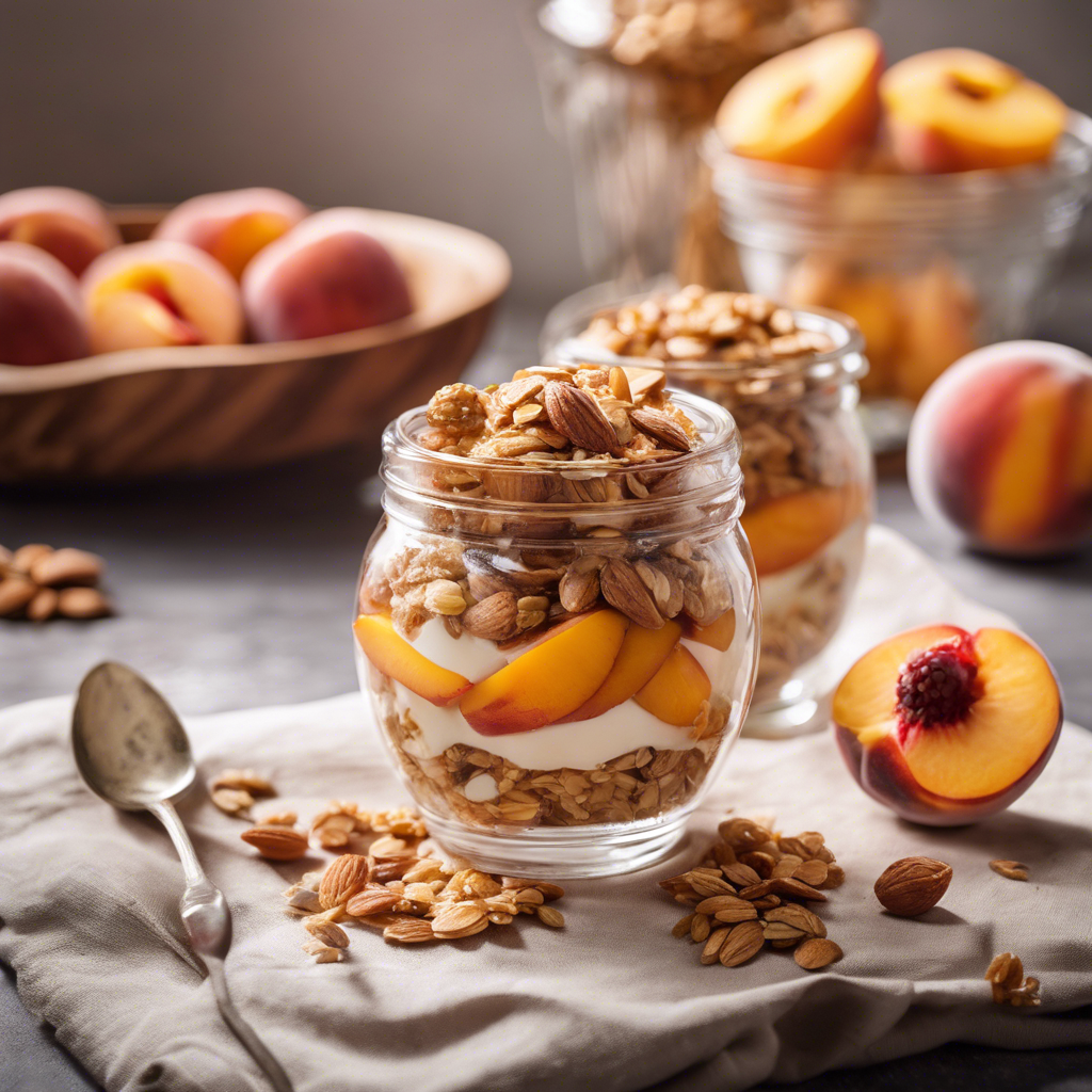 Peach Almond Granola Parfait is a delightful and nutritious dish that originated in the United States. This delectable parfait is a harmonious blend of creamy yogurt, ripe peaches, crunchy almond granola, and a drizzle of honey. It is believed to have been popularized by health-conscious chefs and restaurants in California, known for their emphasis on fresh, local ingredients. The best versions of this dish can be found in trendy cafes and health-focused eateries, where chefs take pride in sourcing the finest peaches and almonds for their parfaits. The key to a perfect Peach Almond Granola Parfait lies in the quality of the ingredients, especially the ripe, juicy peaches and the crunchy, flavorful almond granola. This dish is a favorite among those seeking a wholesome and satisfying breakfast or snack.