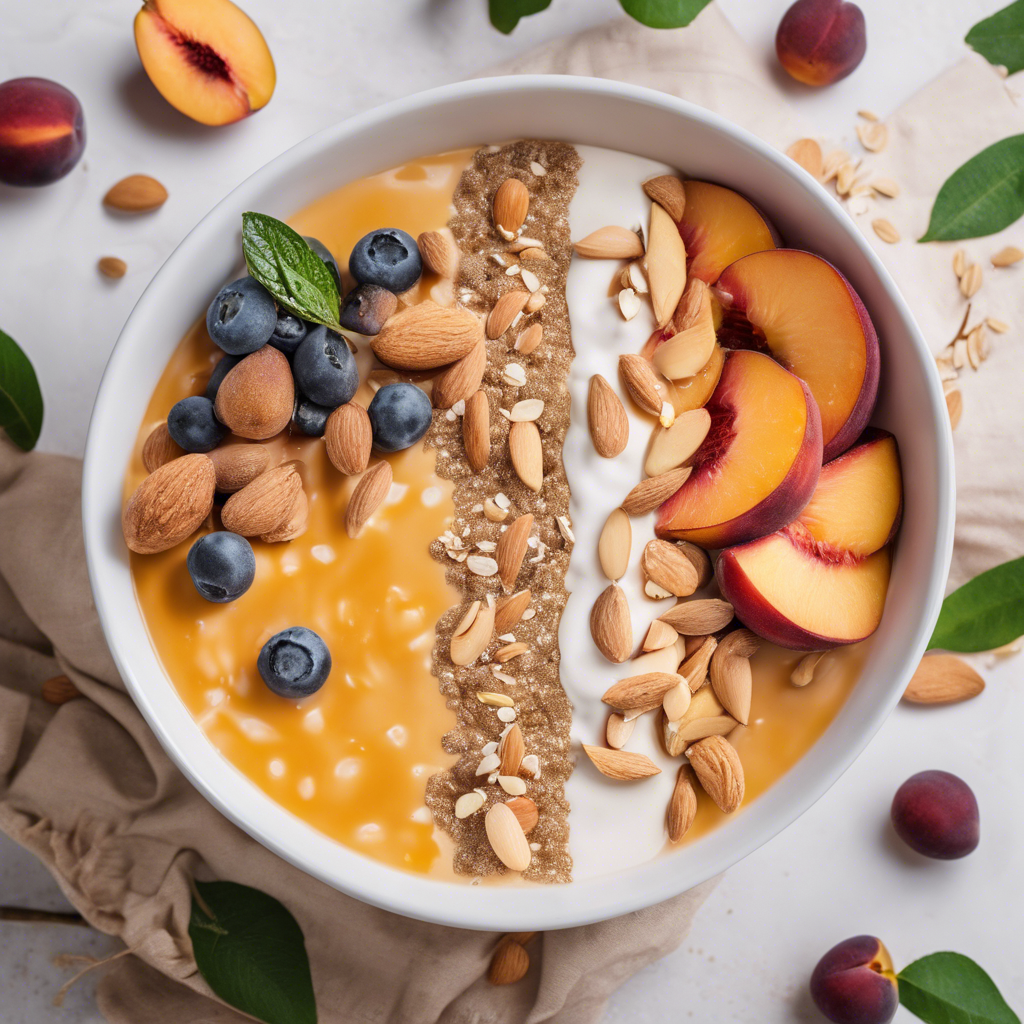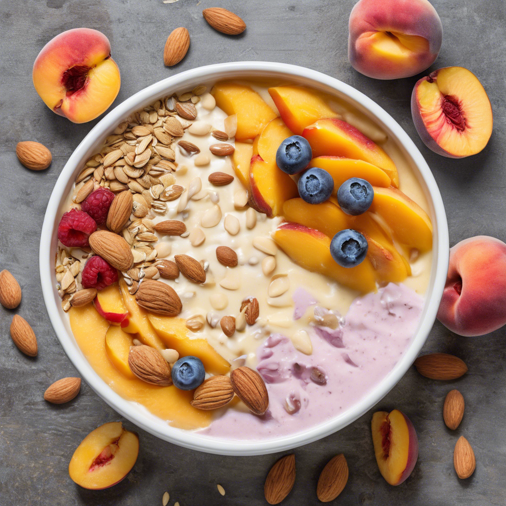 - Toppings: sliced almonds, chia seeds, fresh peach slices, granola