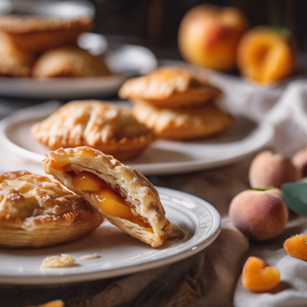- Place 8 dough circles onto the prepared baking sheet. Spoon the peach filling onto the center of each circle, leaving a small border around the edges. Brush the edges with beaten egg, then place a second dough circle on top of each filled circle. Press the edges together with a fork to seal.