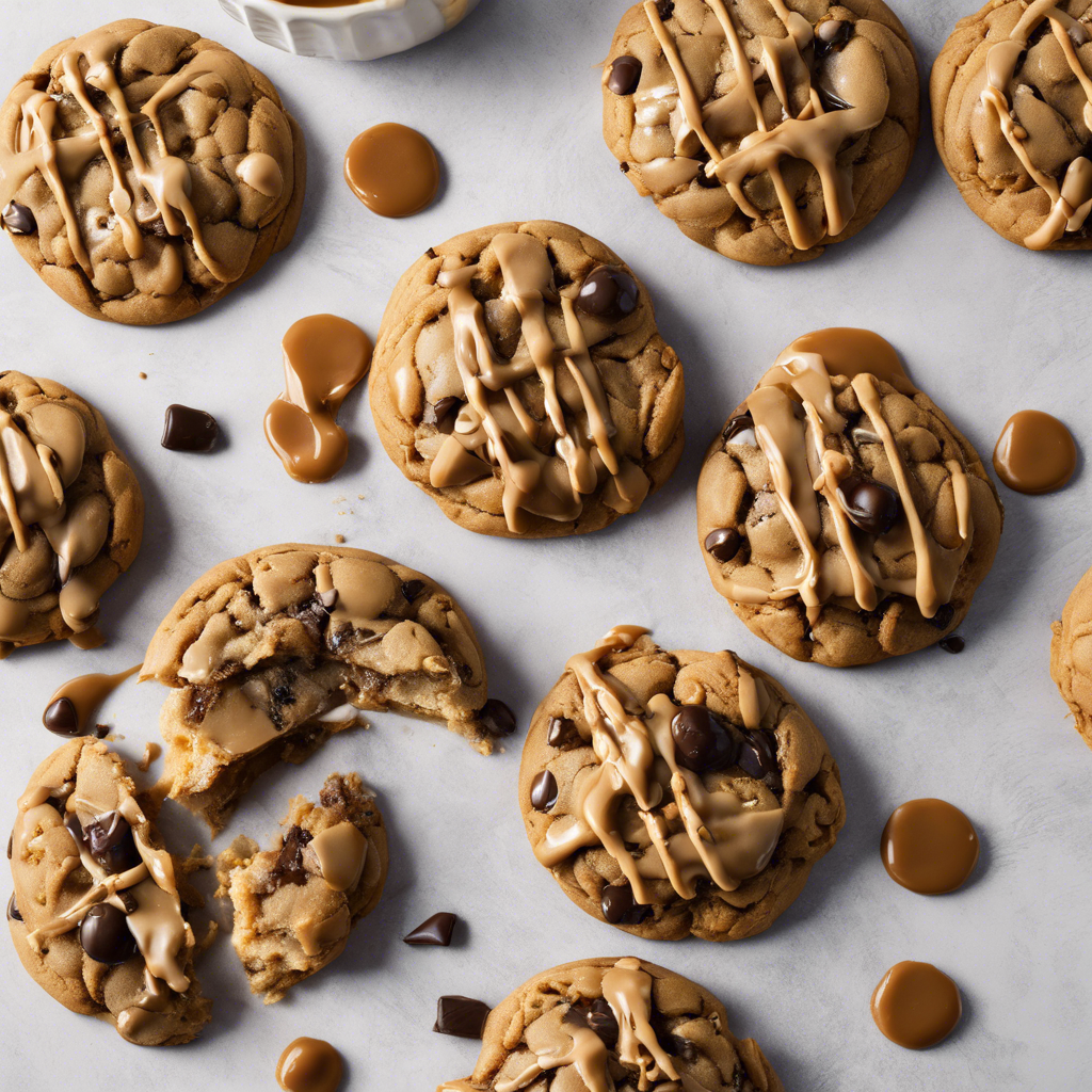 Peanut Butter Chocolate Chip Cookies with Caramel Drizzle are a delightful combination of rich, nutty flavors and sweet, gooey caramel. This indulgent treat has a history rooted in American baking traditions, with the classic flavors of peanut butter and chocolate coming together in a soft, chewy cookie. The addition of a luscious caramel drizzle takes these cookies to the next level, adding a decadent touch that elevates the overall taste experience. Renowned chefs and home bakers alike have put their own spin on this beloved recipe, incorporating high-quality ingredients and innovative techniques to create the perfect balance of flavors and textures. While the origins of this specific variation can be traced back to the fusion of classic cookie recipes and the growing popularity of caramel-infused desserts, its widespread appeal has made it a staple in bakeries and kitchens across the country. For those seeking the ultimate Peanut Butter Chocolate Chip Cookies with Caramel Drizzle experience, renowned bakeries in regions known for their culinary prowess, such as New York City, San Francisco, and Charleston, offer exceptional renditions of this delectable treat. The key to achieving the best results lies in using premium peanut butter, rich chocolate chips, and a homemade caramel drizzle that strikes the perfect balance between sweetness and depth of flavor. While the traditional recipe calls for baking the cookies to a soft, chewy consistency and generously drizzling them with caramel, some alternative methods involve incorporating chopped peanuts for added crunch or experimenting with different types of chocolate for a unique twist. Whether enjoyed fresh out of the oven or paired with a scoop of creamy vanilla ice cream, Peanut Butter Chocolate Chip Cookies with Caramel Drizzle are a true delight for anyone with a sweet tooth.