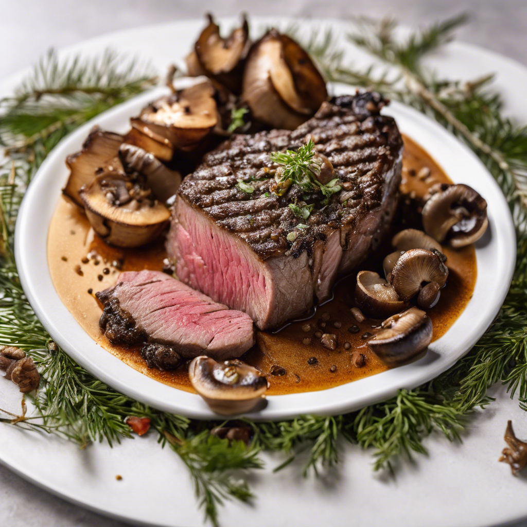 The Peppercorn Crusted Beef Tenderloin Steak with a side of sautéed mushrooms is a classic dish that has stood the test of time. This delectable steak is coated with a generous layer of crushed peppercorns, giving it a bold and flavorful crust. The tenderloin is then seared to perfection, locking in its juicy and tender texture. The side of sautéed mushrooms adds a savory and earthy element to the dish, complementing the rich flavors of the steak. This dish has been a staple in fine dining establishments and steakhouse menus for decades, with renowned chefs like Gordon Ramsay and Wolfgang Puck putting their own spin on it. The dish has its roots in French cuisine, where the art of cooking steak to perfection is a revered tradition. For the best version of this dish, head to renowned steakhouses in cities like New York, Chicago, or Paris, where skilled chefs expertly prepare the beef tenderloin to showcase its natural flavors. The key to getting this dish right lies in the quality of the beef tenderloin and the perfect balance of peppercorn seasoning. Whether it's a special occasion or a craving for a luxurious meal, the Peppercorn Crusted Beef Tenderloin Steak with sautéed mushrooms is a timeless choice that never disappoints.