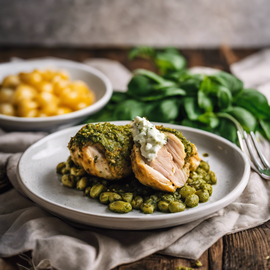 Pesto and Goat Cheese Stuffed Chicken is a delectable dish that originated in Italy, known for its rich flavors and creamy texture. This dish is a fusion of Mediterranean and Italian cuisine, combining the bold flavors of pesto and the creamy tang of goat cheese. Renowned chefs like Giada De Laurentiis and Lidia Bastianich have popularized this dish, infusing it with their own unique twists. The best version of this dish can be found in the charming trattorias of Tuscany, where the chicken is often sourced locally and the pesto is made from fresh basil and pine nuts. The key to this dish is achieving the perfect balance of flavors, with the creamy goat cheese complementing the vibrant pesto. For a unique twist, some chefs also add sun-dried tomatoes or prosciutto to elevate the dish even further. Whether enjoyed in a rustic Italian countryside or at a cozy neighborhood bistro, Pesto and Goat Cheese Stuffed Chicken is a true culinary delight.