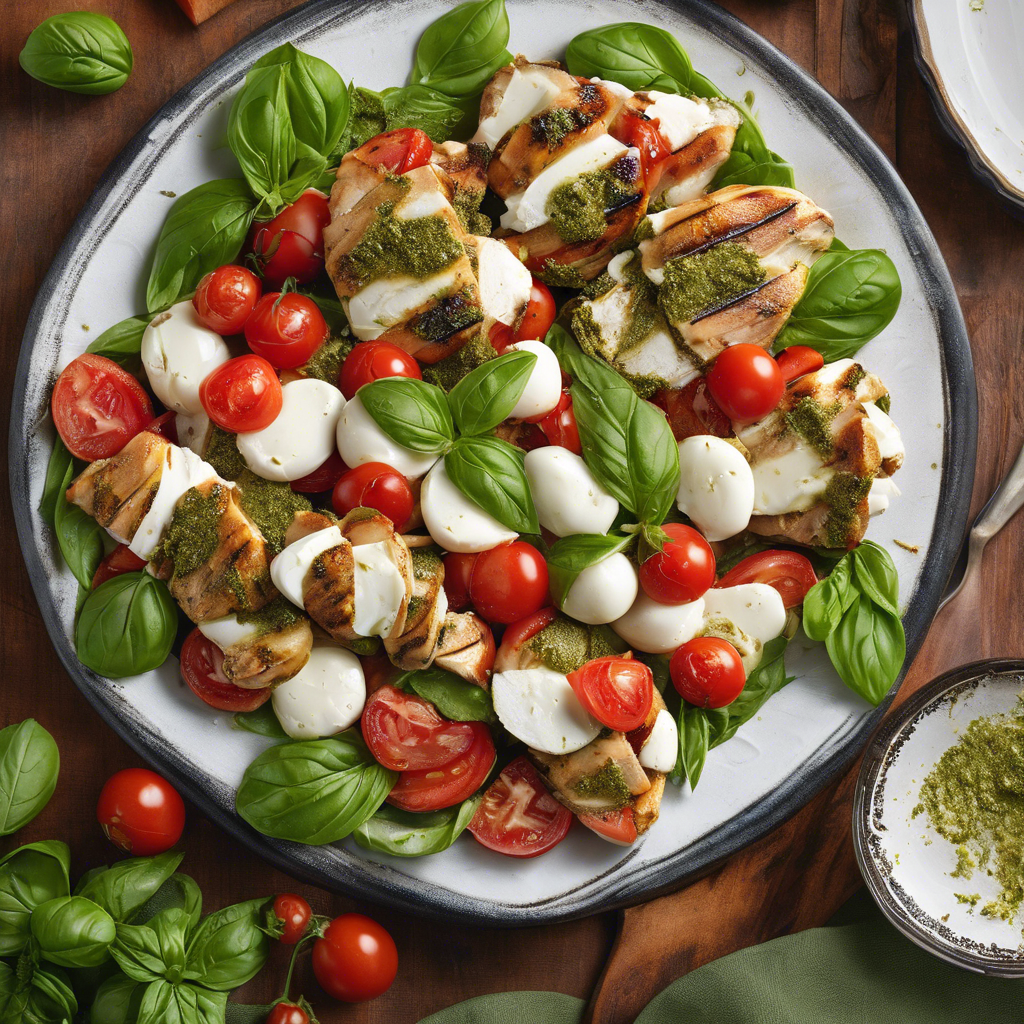 The Pesto Caprese Salad with added grilled chicken is a delightful twist on the classic Caprese salad. Originating from the Campania region of Italy, the traditional Caprese salad features fresh mozzarella, ripe tomatoes, basil, and a drizzle of balsamic glaze. The addition of grilled chicken brings a hearty and protein-packed element to this beloved dish. Renowned chefs like Giada De Laurentiis and Mario Batali have popularized this variation, infusing it with their own unique culinary flair. Today, this dish can be savored in top Italian restaurants worldwide, with the best versions often found in authentic Italian trattorias. The key to perfecting this dish lies in using high-quality, fresh ingredients, especially the homemade pesto and perfectly grilled chicken. For a twist, some chefs also incorporate sun-dried tomatoes or a sprinkle of pine nuts for added texture and flavor. Whether enjoyed as a light lunch or a satisfying dinner, the Pesto Caprese Salad with grilled chicken is a true celebration of Italian flavors.