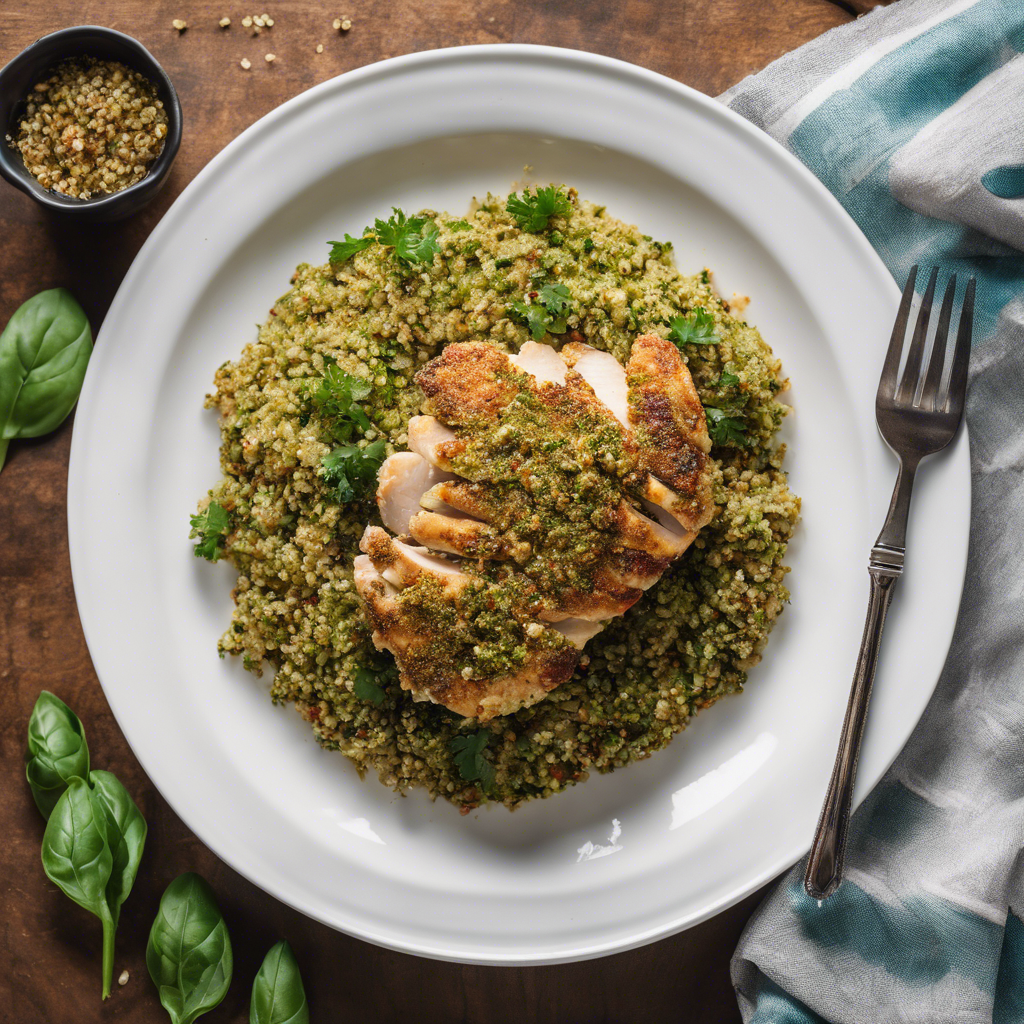 Pesto Crusted Chicken served over a bed of quinoa is a delightful fusion of Italian and Mediterranean flavors. This dish originated in the kitchens of innovative chefs who sought to combine the vibrant taste of pesto with the wholesome goodness of quinoa. The succulent chicken breast is coated with a flavorful pesto sauce and then baked to perfection, creating a crispy, golden crust. The bed of fluffy quinoa provides a nutritious and satisfying base for the tender chicken. This dish has gained popularity in upscale restaurants across the globe, particularly in regions known for their culinary expertise such as Tuscany, Provence, and California. For the best version of this dish, seek out restaurants with skilled chefs who prioritize using fresh, high-quality ingredients. The key to achieving the perfect balance of flavors lies in the quality of the pesto and the cooking technique for the chicken. Alternatively, home cooks can experiment with different variations of pesto, incorporating ingredients like basil, pine nuts, Parmesan cheese, and olive oil to create their own unique twist on this classic dish. Whether enjoyed at a renowned restaurant or prepared at home, Pesto Crusted Chicken over quinoa is a delightful culinary experience that celebrates the harmony of flavors and textures.