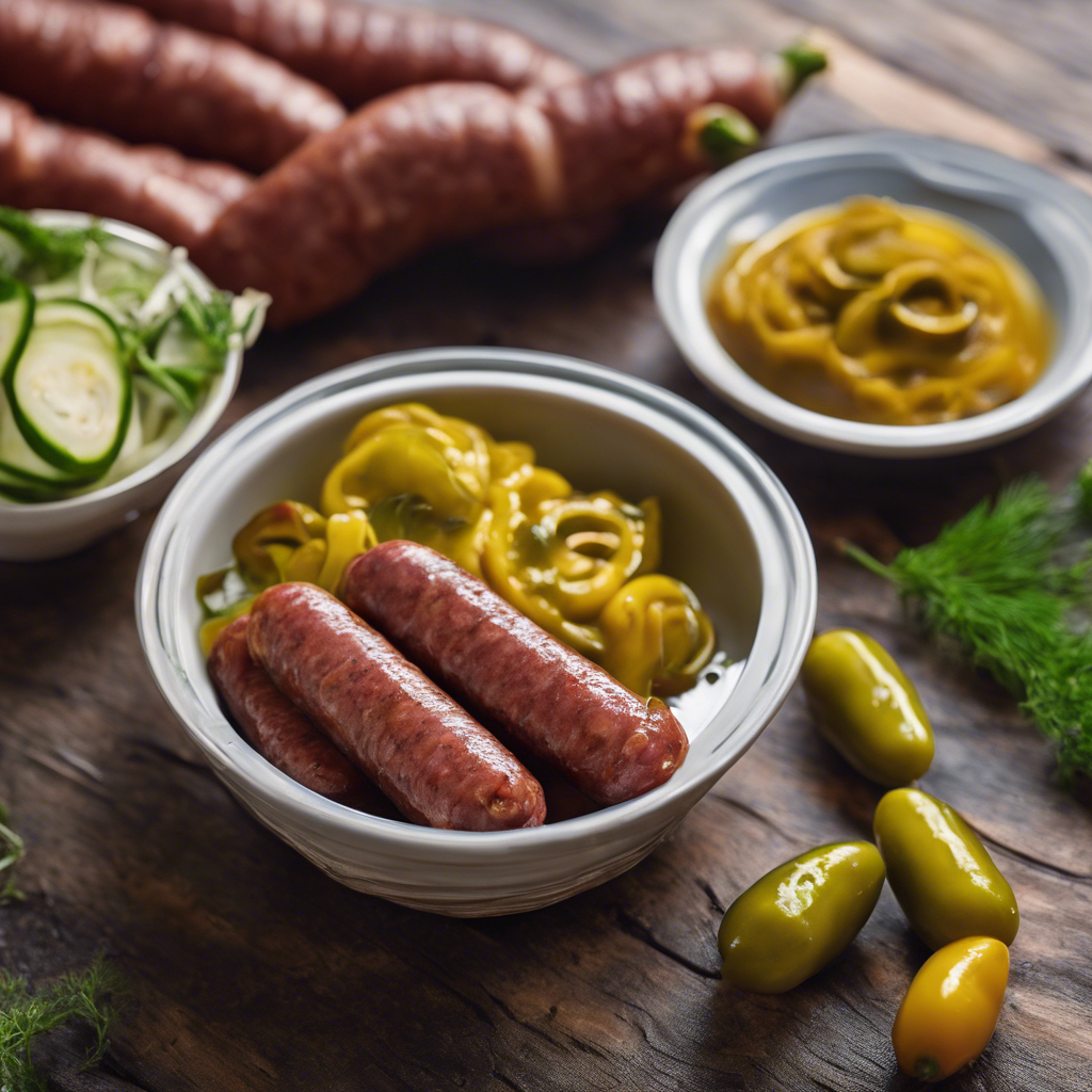 Pickled Sausage with Pickles and Spicy Mustard