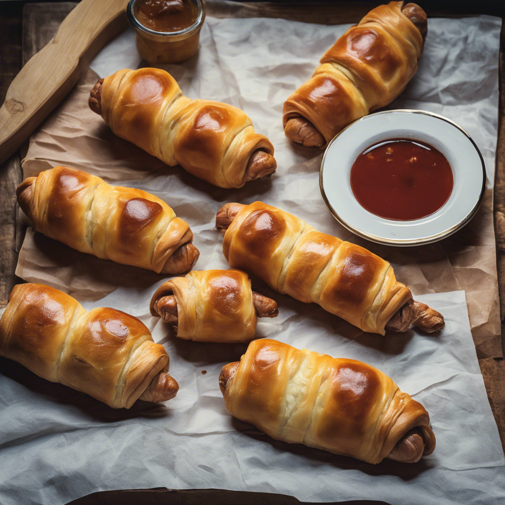 - Arrange the wrapped sausages on a baking sheet lined with parchment paper.