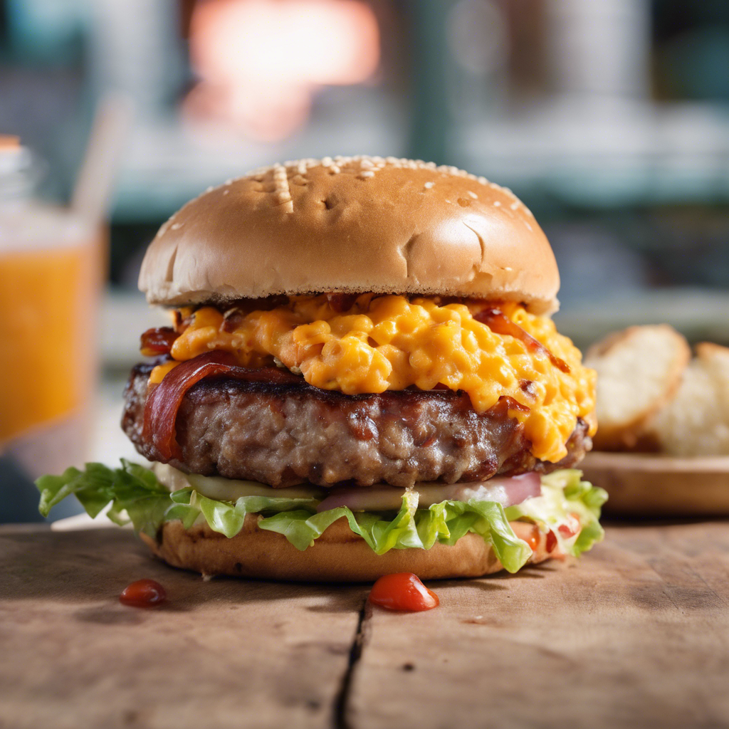 The Pimento Cheese Bacon Burger has a rich history rooted in Southern cuisine. Originating in the United States, this indulgent burger features a juicy patty topped with creamy pimento cheese and crispy bacon, all sandwiched between a gluten-free bun. The dish gained popularity in the South, particularly in regions like South Carolina and Georgia, where chefs added their own unique twists. Today, the best version of this burger can be found in renowned Southern eateries that prioritize quality ingredients and expertly crafted pimento cheese. The key to perfecting this dish lies in the flavorful pimento cheese and a perfectly grilled patty, ensuring a mouthwatering experience for gluten-free diners.