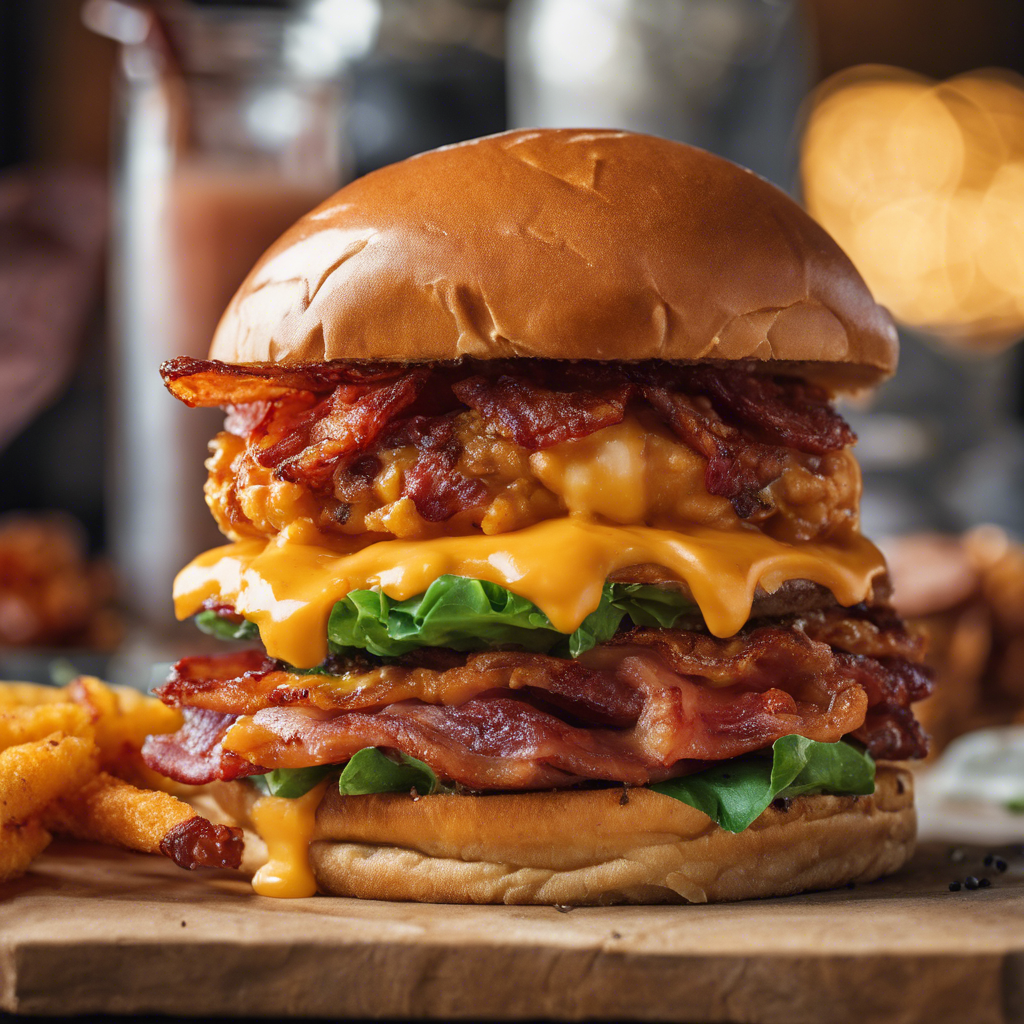 The Pimento Cheese Bacon Burger is a beloved Southern classic that has gained popularity across the United States. This mouthwatering dish features a juicy burger patty topped with creamy pimento cheese and crispy bacon, all sandwiched between a soft, toasted bun. The addition of extra crispy bacon takes this burger to the next level, adding a satisfying crunch to each bite. Originating in the Southern United States, this burger has become a staple in many restaurants and diners, known for its rich and indulgent flavors. Chefs across the region have put their own spin on this iconic dish, with some adding unique ingredients to the pimento cheese or experimenting with different types of bacon for that perfect crunch. One of the key elements of a standout Pimento Cheese Bacon Burger is the quality of the ingredients. From the perfectly seasoned burger patty to the creamy, tangy pimento cheese and, of course, the extra crispy bacon, each component plays a crucial role in creating a truly unforgettable burger experience. For those seeking the best version of this dish, Southern-inspired eateries and barbecue joints are often the go-to spots. However, home cooks can also recreate this delectable burger by paying close attention to the cooking process, ensuring that the bacon reaches that coveted extra crispy texture. Whether enjoyed at a local diner or prepared at home, the Pimento Cheese Bacon Burger with extra crispy bacon is a delightful indulgence that continues to captivate food enthusiasts with its irresistible combination of flavors and textures.