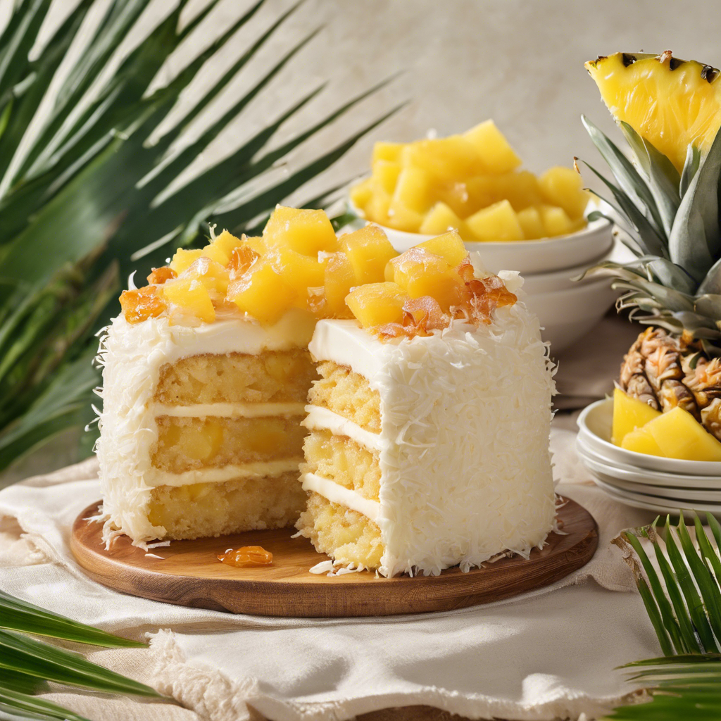 The Pineapple Coconut Cake with a layer of pineapple jam is a tropical delight that combines the sweet and tangy flavors of pineapple with the rich, creamy texture of coconut. This decadent dessert has a history rooted in the tropical regions where pineapples and coconuts are abundant, such as the Caribbean, Hawaii, and Southeast Asia. Renowned chefs and bakers have put their own spin on this classic recipe, incorporating local ingredients and techniques to create unique variations of the cake. The addition of a layer of pineapple jam adds an extra burst of fruity flavor and moisture to the cake, making it a popular choice for those who love tropical desserts. One famous alternative method for making this dish is to use fresh pineapple puree to make the jam, enhancing the natural sweetness and aroma of the fruit. The key to a perfect Pineapple Coconut Cake lies in using high-quality ingredients, such as fresh pineapple, coconut milk, and shredded coconut, to achieve the perfect balance of flavors and textures. For those seeking the best version of this dish, look no further than the tropical regions where it originated. In Hawaii, renowned bakeries and restaurants offer their own take on the Pineapple Coconut Cake, using locally sourced pineapples and coconuts to create an authentic and unforgettable dessert experience. Whether enjoyed on a sunny beach or at a tropical-themed party, the Pineapple Coconut Cake with a layer of pineapple jam is sure to transport you to paradise with every bite.