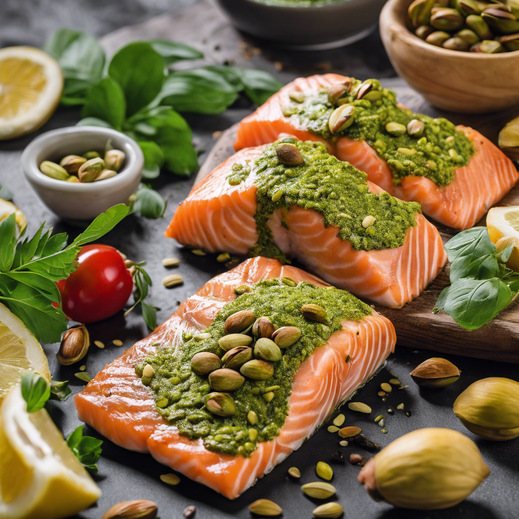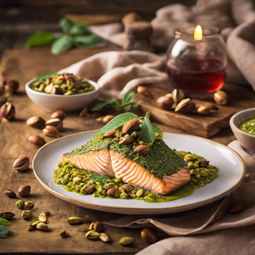 Pistachio Pesto Salmon is a delectable dish that marries the rich, buttery flavor of salmon with the nutty, aromatic essence of pistachio pesto. This dish has its roots in Italian cuisine, where pesto, traditionally made with basil, garlic, pine nuts, and Parmesan cheese, has been reimagined with the addition of pistachios for a unique twist. Renowned chefs like Giada De Laurentiis have popularized this variation, infusing it with their own culinary flair. The best versions of this dish can be found in coastal regions where fresh, high-quality salmon is abundant, such as in the Pacific Northwest. The key to perfecting this dish lies in the balance of flavors, ensuring that the pistachio pesto complements the salmon without overpowering it. For a unique alternative, consider using a cedar plank to grill the salmon, imparting a smoky aroma that elevates the dish to new heights.