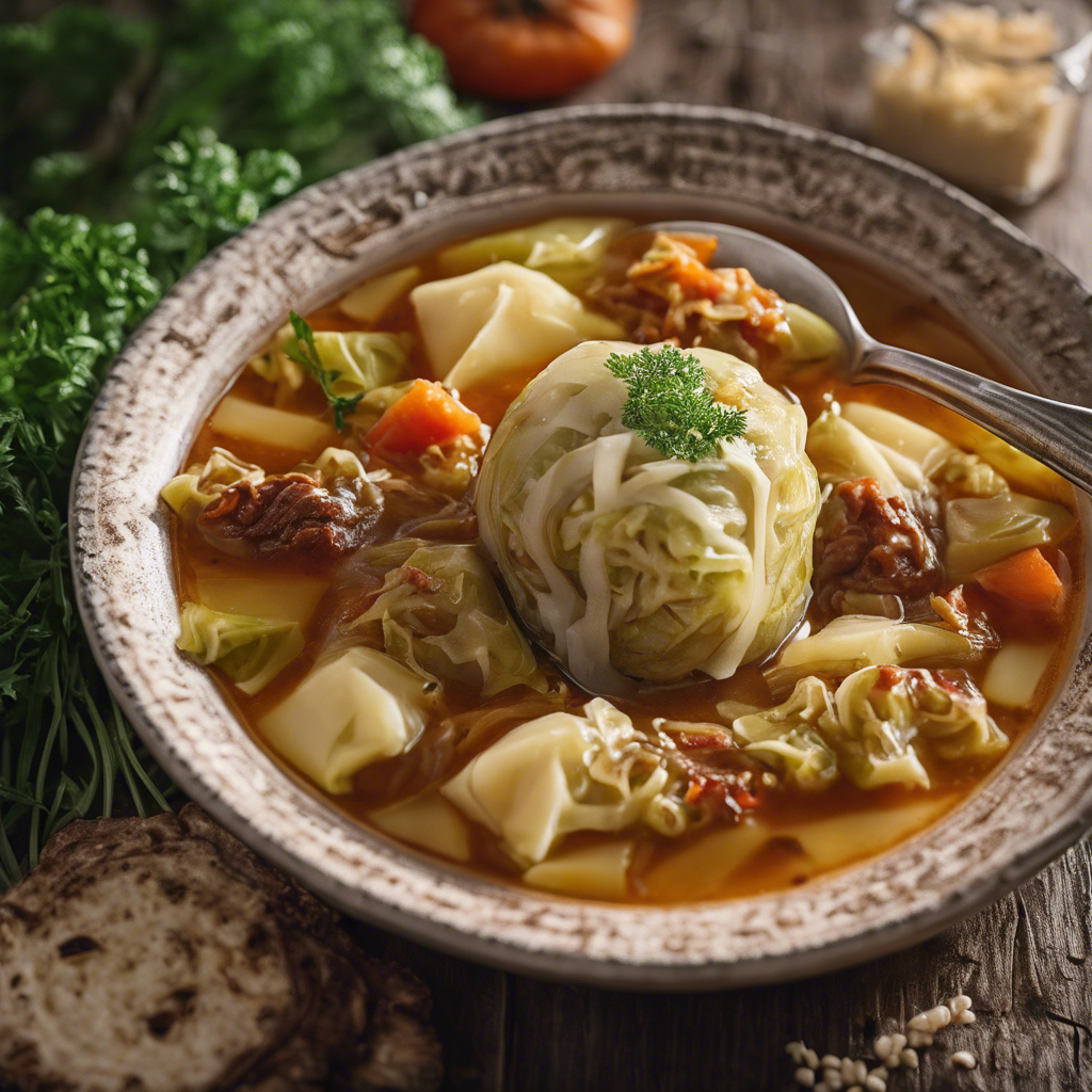 Polish Cabbage Roll Soup, also known as "Gołąbki" or "Golabki Soup," has its roots in traditional Polish cuisine. This hearty and comforting soup is a variation of the classic cabbage roll dish, with a rich history dating back to the 18th century. The soup features tender cabbage leaves stuffed with a savory mixture of ground meat, rice, and spices, all simmered in a flavorful broth. This dish is a staple in Polish households and is often served during special occasions and family gatherings. Chefs in regions like Krakow and Warsaw have perfected their own unique versions of this beloved soup, adding their own twist with local ingredients and cooking techniques. For the best version of this dish, look for a restaurant or a Polish deli that takes pride in using high-quality ingredients and traditional recipes. The key to a delicious Polish Cabbage Roll Soup lies in the balance of flavors and the tenderness of the cabbage leaves. The use of fresh, sweet cabbage and a well-seasoned meat filling is crucial to achieving an authentic taste. Some alternative methods for making this dish include adding a dollop of sour cream or a sprinkle of fresh dill on top for an extra layer of richness and freshness. Whether enjoyed at a cozy family dinner or at a bustling Polish eatery, this soul-warming soup is a true embodiment of Polish culinary heritage.