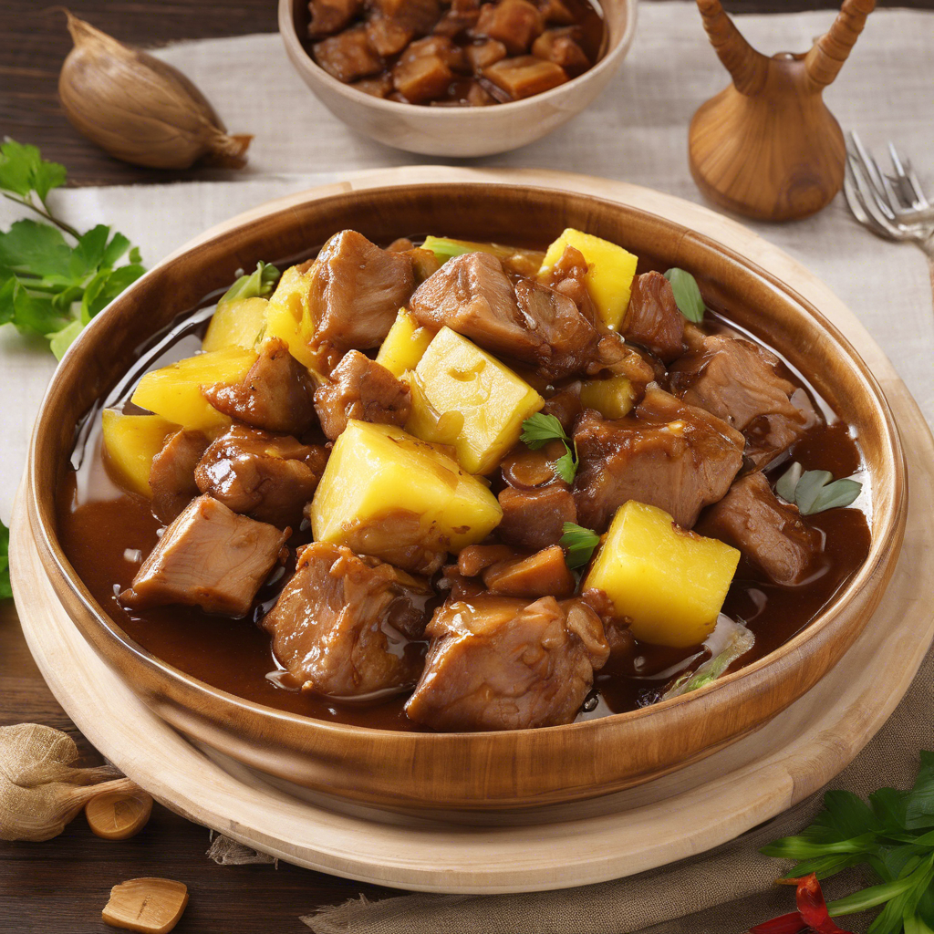 Pork Adobo with pineapple chunks is a delightful twist on the classic Filipino dish. The history of Pork Adobo dates back to the Spanish colonial period, where the cooking method of marinating meat in vinegar, soy sauce, and spices was introduced. The addition of pineapple chunks brings a sweet and tangy flavor to the dish, complementing the savory and rich taste of the pork. This variation is popular in the Philippines, especially in regions with abundant pineapple plantations. Chefs and home cooks alike have put their own spin on this dish, making it a versatile and beloved recipe. For the best version of this dish, head to traditional Filipino restaurants or explore home kitchens in the Philippines. The key to getting this dish right lies in the balance of flavors - the perfect harmony of tangy vinegar, salty soy sauce, and the sweetness of pineapple. Some alternative methods for making this dish include using coconut milk for a creamier texture or adding chili for a spicy kick. Whether enjoyed in a bustling eatery in Manila or prepared with love in a family kitchen, Pork Adobo with pineapple chunks is a true Filipino culinary gem.