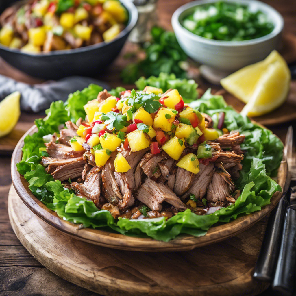 - To serve, spoon the pork carnitas onto a serving platter and top with the pineapple salsa. Enjoy with warm tortillas or over rice.