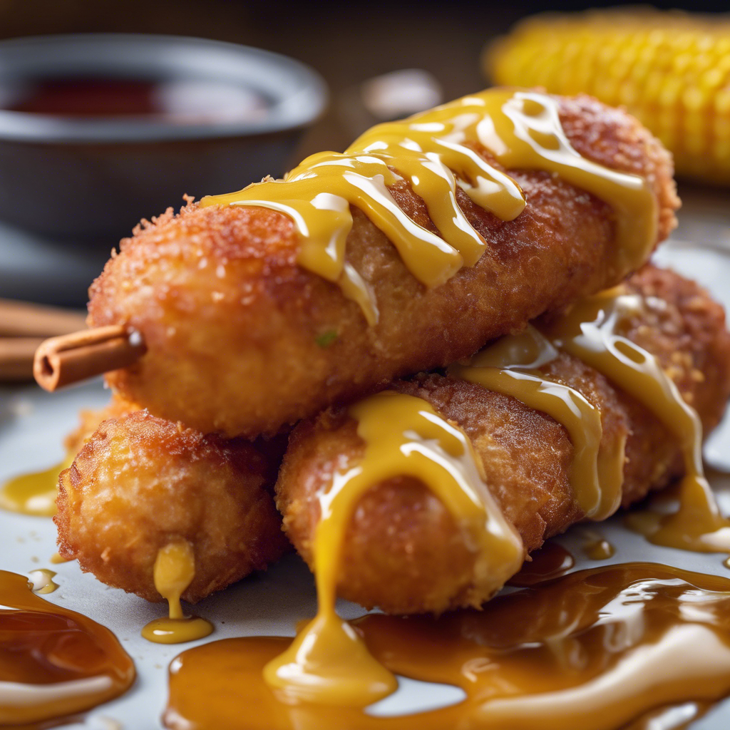The history of Potato Chip Crusted Corn Dogs with a honey mustard glaze can be traced back to the creative minds of chefs looking to elevate the classic fair food. Originating in the heart of the American Midwest, this indulgent treat combines the nostalgia of corn dogs with the irresistible crunch of potato chips. Renowned chefs in regions like Chicago and Minneapolis have put their own spin on this dish, incorporating local flavors and ingredients. The key to perfecting this dish lies in the balance of the crispy potato chip coating and the sweet tang of the honey mustard glaze. For the best version of this dish, head to artisanal food fairs or trendy gastropubs where chefs take pride in their innovative takes on classic comfort foods. Alternatively, home cooks can experiment with different types of potato chips and hone their honey mustard glaze recipe to achieve the ideal flavor profile. Whether enjoyed at a bustling food festival or homemade in the comfort of your kitchen, Potato Chip Crusted Corn Dogs with a honey mustard glaze are a delightful indulgence that pays homage to beloved fairground fare.
