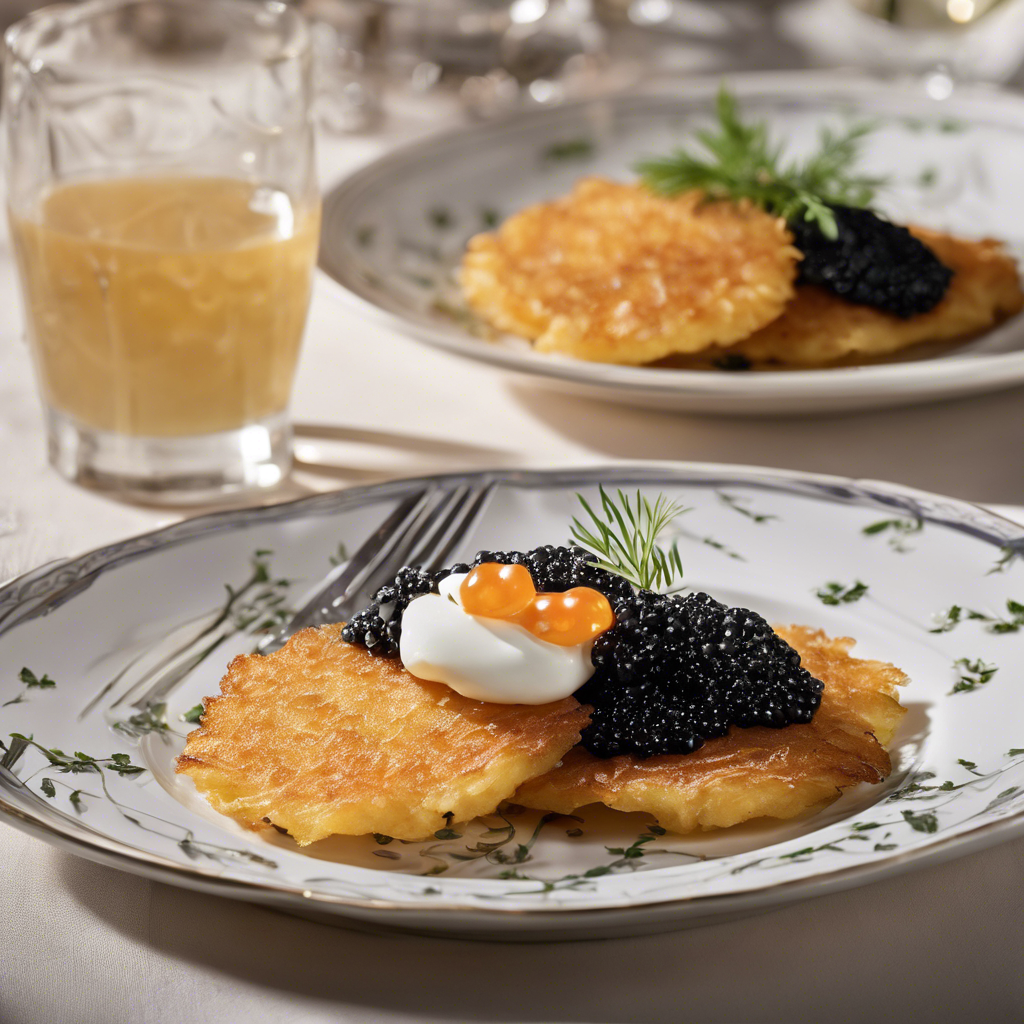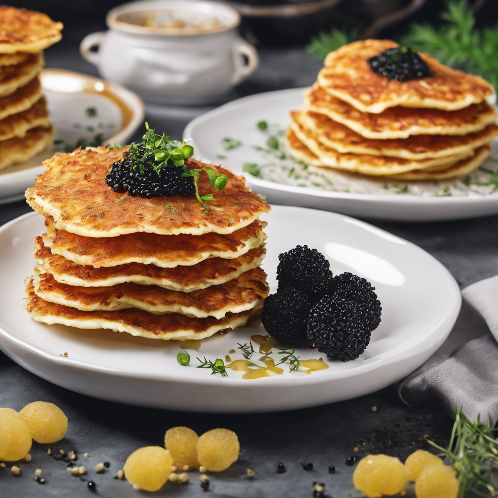 Potato pancakes, also known as latkes, have a rich history dating back to the 18th century in Eastern Europe. These crispy, golden-brown delights are made from grated potatoes, onions, and eggs, then fried to perfection. The addition of a dollop of caviar elevates this humble dish to a luxurious treat fit for royalty. Renowned chefs like Yotam Ottolenghi have reimagined this classic by adding a touch of elegance with the inclusion of caviar, creating a harmonious blend of flavors and textures. Today, the best versions of this dish can be found in upscale restaurants and fine dining establishments, where the quality of the caviar is paramount. The key to perfecting this dish lies in achieving the ideal balance of crispy exterior and fluffy interior, while the caviar adds a burst of briny richness, creating a truly indulgent experience. Whether enjoyed as an appetizer or a decadent snack, potato pancakes with a dollop of caviar are a delightful fusion of tradition and luxury.