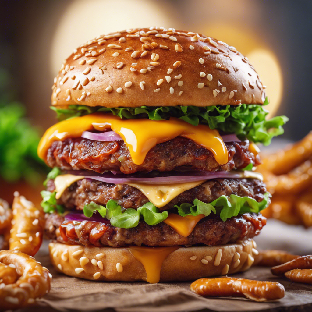 The Pretzel Burger has a rich history dating back to the 19th century in Germany, where pretzels were a staple food. The concept of using a pretzel as a bun for a burger emerged as a creative twist on the classic hamburger. The salty, chewy pretzel bun adds a unique flavor and texture to the juicy burger patty, creating a delightful culinary experience. Today, the Pretzel Burger has gained popularity in the United States and beyond, with many restaurants and chefs putting their own spin on this delicious creation. The best versions of this dish can be found in gastropubs and burger joints known for their innovative and high-quality ingredients. To make the perfect Pretzel Burger, it's crucial to get the pretzel bun just right, ensuring it's soft, yet sturdy enough to hold the juicy patty and toppings. Some chefs also experiment with adding pretzel crumbs to the burger patty for an extra burst of flavor. Whether enjoyed with classic toppings or gourmet ingredients, the Pretzel Burger continues to be a beloved choice for burger enthusiasts seeking a delightful twist on a timeless favorite.