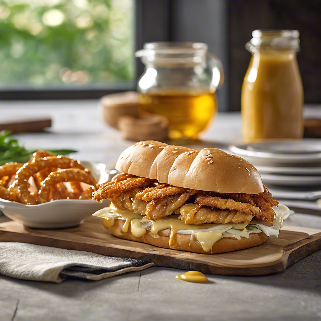 The Pretzel Chicken Sandwich with a honey mustard glaze has a rich history dating back to the heart of America. This iconic dish combines the crispy, savory goodness of a pretzel-crusted chicken breast with the sweet and tangy flavors of honey mustard. Renowned chefs across the Midwest, particularly in cities like Chicago and Milwaukee, have perfected this mouthwatering creation. The key to this dish lies in the perfect balance of the pretzel crust and the honey mustard glaze, creating a harmonious blend of textures and flavors. For the best version of this dish, head to local diners and pubs known for their innovative takes on classic comfort food.