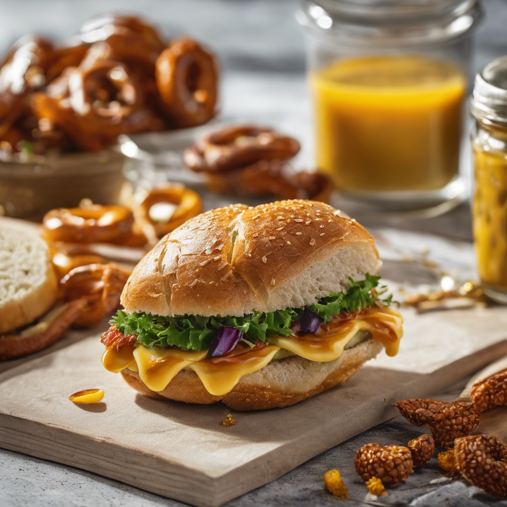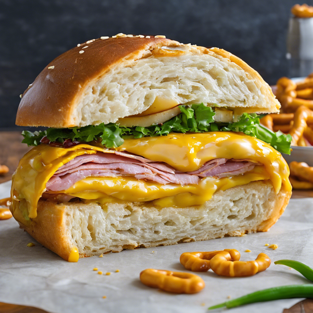 The Pretzel Roll Sandwich with a spicy mustard spread has a rich history dating back to the heart of Germany. This delectable creation is a fusion of traditional German pretzels and the American love for sandwiches. The pretzel roll, with its chewy texture and deep brown crust, provides the perfect vessel for a variety of fillings. The spicy mustard spread adds a zesty kick, elevating the flavors to new heights. Chefs across the world have put their own spin on this classic, but the best versions can still be found in the charming beer gardens of Bavaria. To make this dish at home, it's crucial to get the pretzel roll just right - a soft, pillowy interior encased in a crispy, salty crust. As for the spicy mustard spread, using high-quality, whole grain mustard is key to achieving that perfect balance of heat and tang. Whether enjoyed in a cozy German pub or crafted in your own kitchen, the Pretzel Roll Sandwich with a spicy mustard spread is a true delight for the senses.