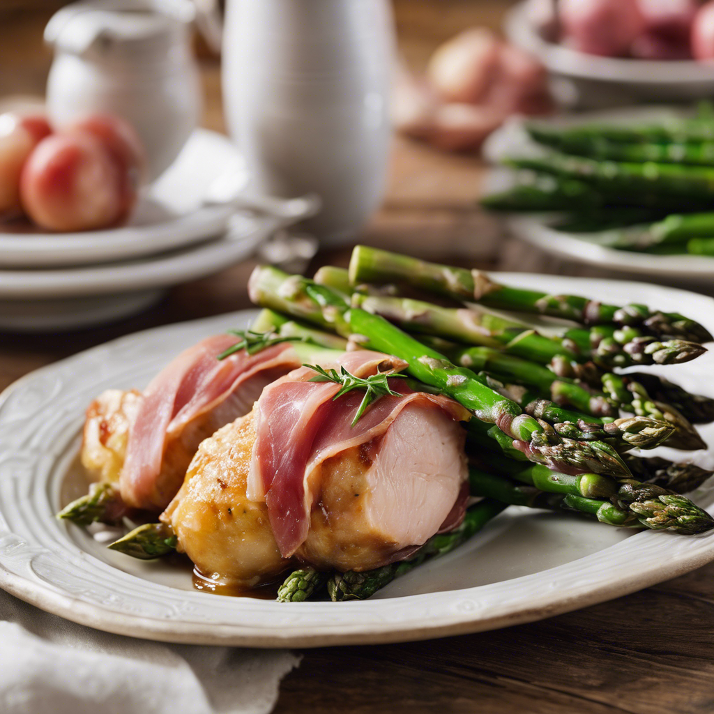 Prosciutto-Wrapped Asparagus Stuffed Chicken is a delectable dish that originated in Italy. This culinary masterpiece combines the savory flavors of prosciutto, tender asparagus, and succulent chicken. The dish has gained popularity in modern times due to its elegant presentation and exquisite taste. Renowned chefs like Giada De Laurentiis and Mario Batali have showcased their own versions of this dish, adding their unique twists to the classic recipe. The best version of this dish can be found in authentic Italian restaurants, particularly in the regions of Tuscany and Emilia-Romagna. The key to perfecting this dish lies in using high-quality prosciutto and fresh asparagus to complement the tender chicken. For a twist, some chefs also incorporate creamy cheeses or aromatic herbs into the stuffing. Whether enjoyed at a fine dining establishment or prepared at home, Prosciutto-Wrapped Asparagus Stuffed Chicken is a true culinary delight.