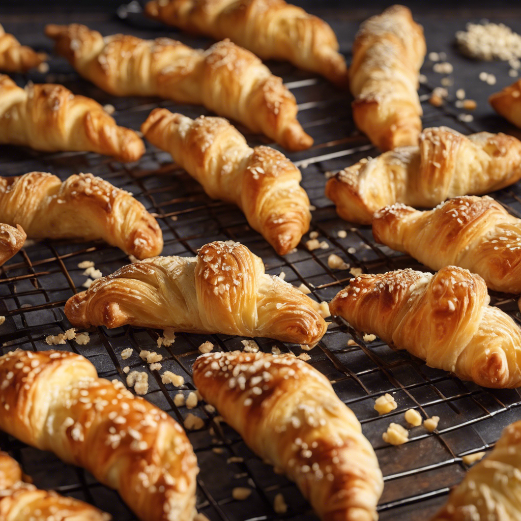 - Remove from the oven and let cool for a few minutes before serving. Enjoy the delicious and flaky puff pastry cheese twists with a sprinkle of sesame seeds!