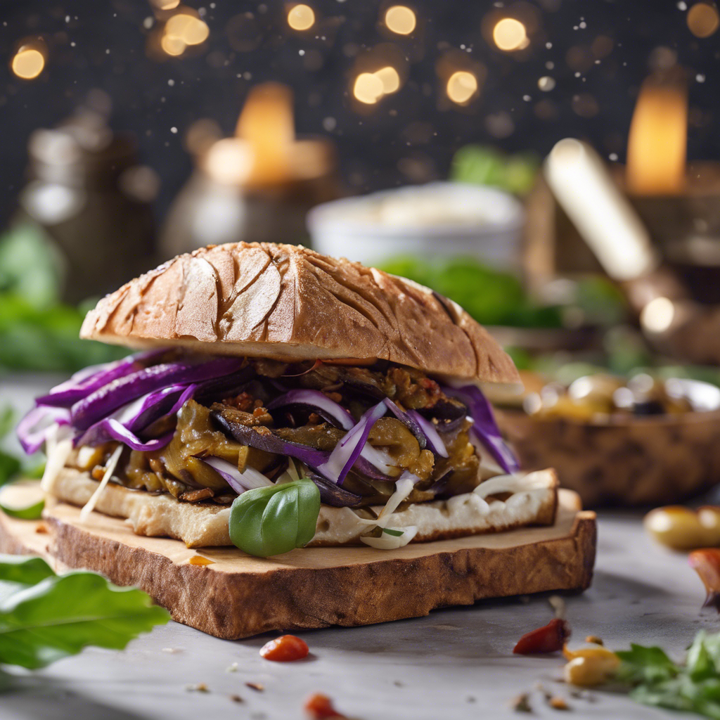 The Pulled Eggplant Sandwich has a rich history rooted in the culinary traditions of the Mediterranean. This vegetarian delight gained popularity as a meat alternative, especially among health-conscious and environmentally conscious food enthusiasts. Chefs in regions like the Middle East and Southern Europe have perfected the art of slow-cooking eggplant until it reaches a tender, "pulled" consistency, then seasoning it with a blend of aromatic spices. The best versions of this dish can be found in bustling markets and family-owned eateries, where the eggplant is often paired with creamy tahini, fresh herbs, and pillowy soft bread. The key to a perfect Pulled Eggplant Sandwich lies in achieving a melt-in-your-mouth texture and infusing the eggplant with a harmonious blend of flavors. For a twist, some chefs incorporate smoky flavors by grilling the eggplant or adding a touch of sweet and tangy pomegranate molasses. Whether enjoyed as a street food delight or a gourmet creation, the Pulled Eggplant Sandwich continues to captivate food lovers with its irresistible combination of textures and flavors.