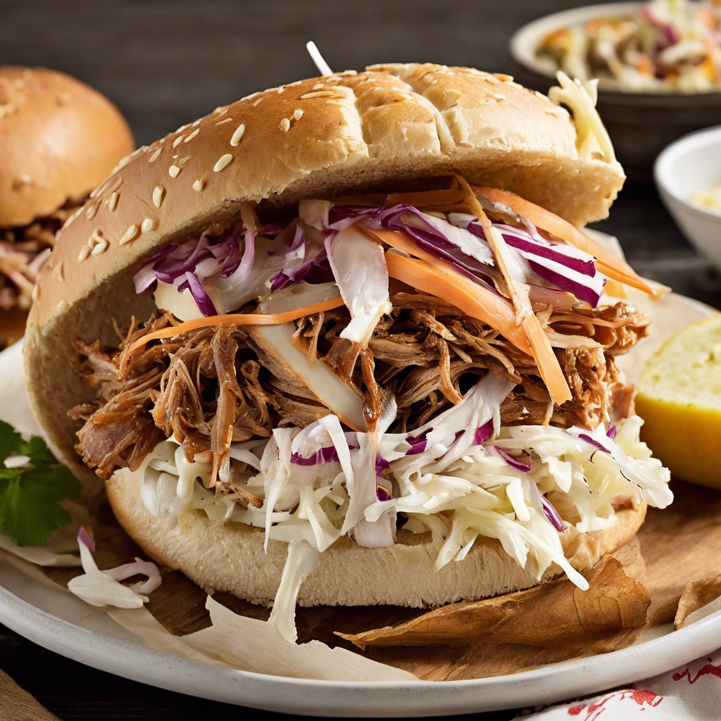 The history of the Pulled Pork Sandwich with coleslaw topping can be traced back to the Southern United States, where it originated as a popular dish in barbecue joints and home kitchens. The slow-cooked, tender pulled pork is traditionally seasoned with a blend of spices and then piled high on a soft, fluffy bun. The addition of creamy, tangy coleslaw provides a refreshing contrast to the rich, smoky flavor of the pork. This iconic combination has become a staple in Southern cuisine, with renowned chefs and restaurants across the region putting their own unique spin on the classic recipe. Today, the best versions of this dish can be found in barbecue meccas like Memphis, Tennessee, and Kansas City, Missouri, where pitmasters take great pride in perfecting their pulled pork and coleslaw recipes. To achieve the authentic flavor and texture of this beloved sandwich, it's crucial to slow-cook the pork until it's fall-apart tender and to dress the coleslaw with a creamy, slightly sweet dressing. While the traditional method involves smoking the pork for hours on end, some modern variations use a slow cooker or pressure cooker to achieve similar results in a fraction of the time. Whether you're enjoying it at a renowned barbecue joint or whipping it up in your own kitchen, the Pulled Pork Sandwich with coleslaw topping is a true Southern classic that never fails to satisfy.