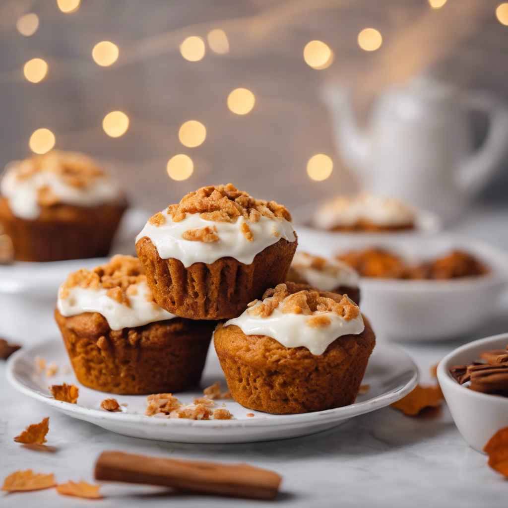 Pumpkin muffins with cream cheese frosting have a rich history dating back to the early 20th century. This delectable treat gained popularity in the United States, particularly in the Northeast and Midwest regions, where pumpkin is a beloved ingredient in fall baking. Renowned chefs and home bakers alike have perfected the art of creating moist and flavorful pumpkin muffins, often adding warm spices like cinnamon, nutmeg, and cloves for an extra burst of flavor. The addition of creamy, tangy cream cheese frosting takes these muffins to the next level, creating a perfect balance of sweetness and richness. Today, the best versions of this dish can be found in cozy bakeries and cafes across the country, where they are enjoyed as a seasonal delight. To make the perfect pumpkin muffins with cream cheese frosting, it's essential to use high-quality pumpkin puree and to whip the cream cheese frosting until it's light and fluffy. For a fun twist, some bakers also sprinkle chopped nuts or a dash of pumpkin spice on top of the frosting for added texture and visual appeal. Whether enjoyed as a breakfast treat or a dessert, pumpkin muffins with cream cheese frosting are a beloved classic that continues to delight food enthusiasts of all ages.