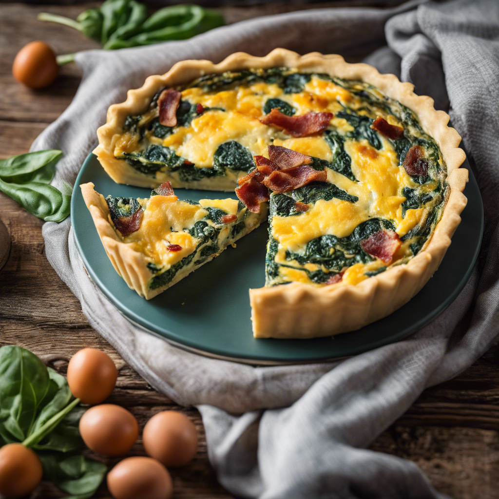 - Sprinkle the bacon, cheddar cheese, chopped onion, and drained spinach evenly over the pie crust.