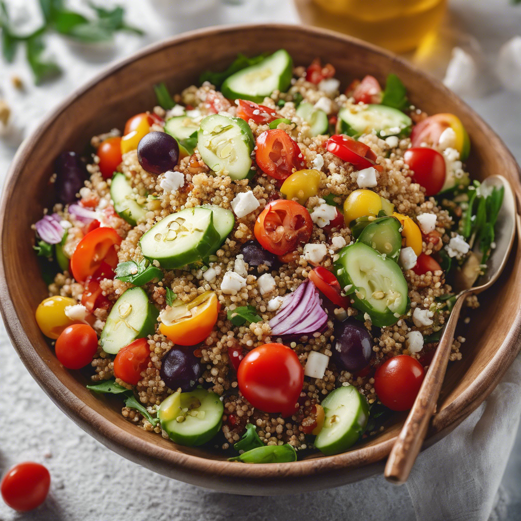 Quinoa Greek Salad is a modern twist on the classic Greek salad, incorporating the ancient grain quinoa for added protein and texture. This dish originated in the health-conscious culinary world, where chefs sought to create a nutritious and satisfying salad option. The combination of crisp cucumbers, juicy tomatoes, briny olives, tangy feta cheese, and a zesty lemon vinaigrette perfectly complements the nutty flavor of quinoa. This salad has gained popularity in Mediterranean-inspired restaurants and health food cafes, particularly in regions with a focus on fresh, local ingredients. For the best version of this dish, look for ripe, flavorful tomatoes and high-quality feta cheese. Some chefs also add fresh herbs like mint or dill for an extra burst of flavor.